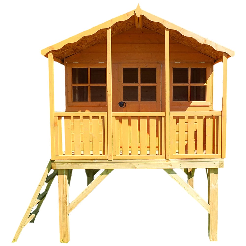 Embark on endless adventures with the Shire Stork Playhouse with Platform 6 x 4ft. A very pretty playhouse featuring a large veranda and attractively shaped facias. It is a perfect playhouse for your children to play in and will look great in the garden. It is made from high-grade FSC-approved Northern European pine shiplap board, and the joinery-made opening windows and half-glazed doors are all mortise and tenon jointed. Plus, it has details such as a full-length safety hinge and safety glazing. The playhouse complies with BS EN71, the safety standard and carries the CE mark. It is supplied in a honey brown timber basecoat and is ready for your own choice of top coat on installation. Following your order, a link will be sent to choose your delivery day. On the morning of delivery day, you will also receive live tracking information. Before you assemble your building, you will need a flat base and level to a sufficient size. Grass, soil or gravel are not sufficient as they will move with the weight of a building. Imperial dimensions are approximate; please refer to the exact metric dimensions in the data given. Note: Currently, the product is not delivered to DG, TD, KA, ML, EH, G, PA, FK, KY, PH, DD, AB IV and KW areas. The inconvenience is regretted, and you will be updated when it's available to order for the mentioned postcodes.