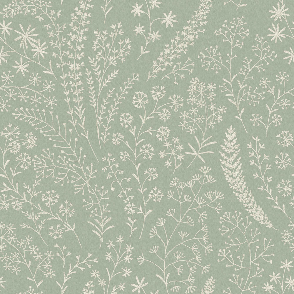 Grandeco Trail Foliage and Flowers Green Sage Textured Wallpaper
