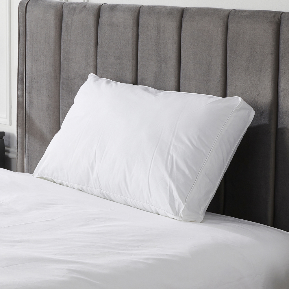 Say goodbye to restless nights with the Huggleland Cotton Side Sleeper Pillow. Carefully crafted to offer optimal support for those who prefer sleeping on their side. This pillow provides a firm yet comfortable foundation to gently cushion your neck and head, promoting a peaceful night's sleep. It comes with a lavish cotton cover and is generously stuffed with plush hollow fibre, blending cosiness with refinement. Moreover, this pillow is effortless to maintain as it can be machine-washed.