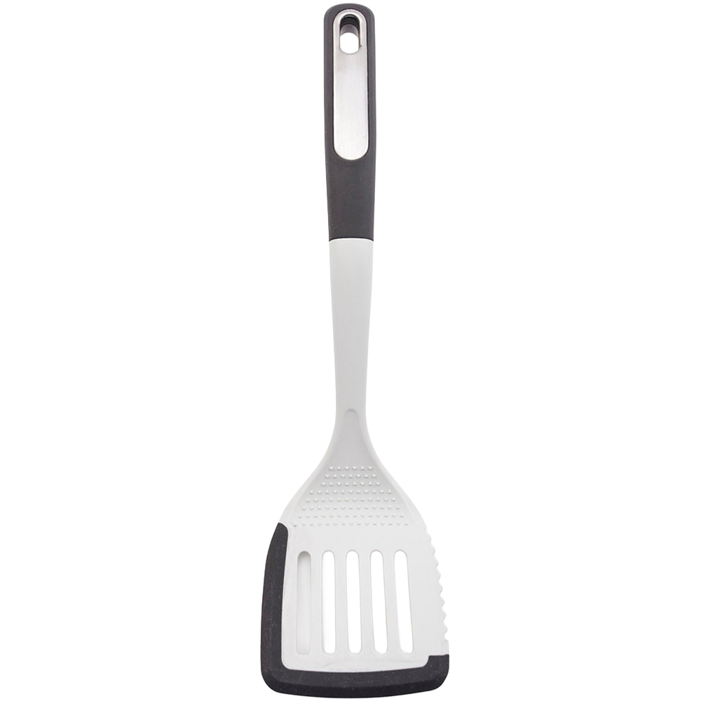 The Silicone Edge Slotted Turner features a silicone edge, perfect for use on non-stick surfaces. It also includes a soft-touch, stay-cool handle for a secure grip and a handy hanging slot in the handle. With its sleek, modern design, it's perfect for frying and serving.