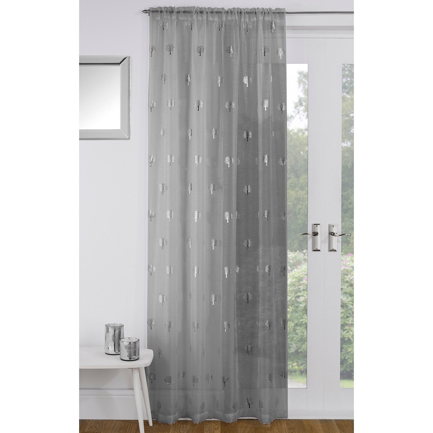 Dainty and elegant, the Birch Panel Curtain is cut from sheer fabric and embellished with charming tree silhouettes in a glossy metallic design. Allowing natural light to flow into your home while increasing your privacy, this voile is a classy and lustrous accessory for French doors, patio doors, or other glass entrance-ways.