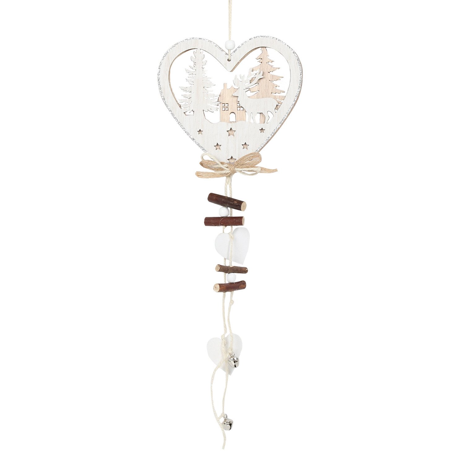 This sweet Silver Glittered Icon Reindeer Scene is the ideal finishing touch to your festive home. Available in three designs, this Christmas ornament features a beautiful reindeer scene finished with a hanging of bows, wood, hearts, and bells. Ideal for hanging in windows or on walls, this is a gorgeous, rustic ornament you'll want to use each year.