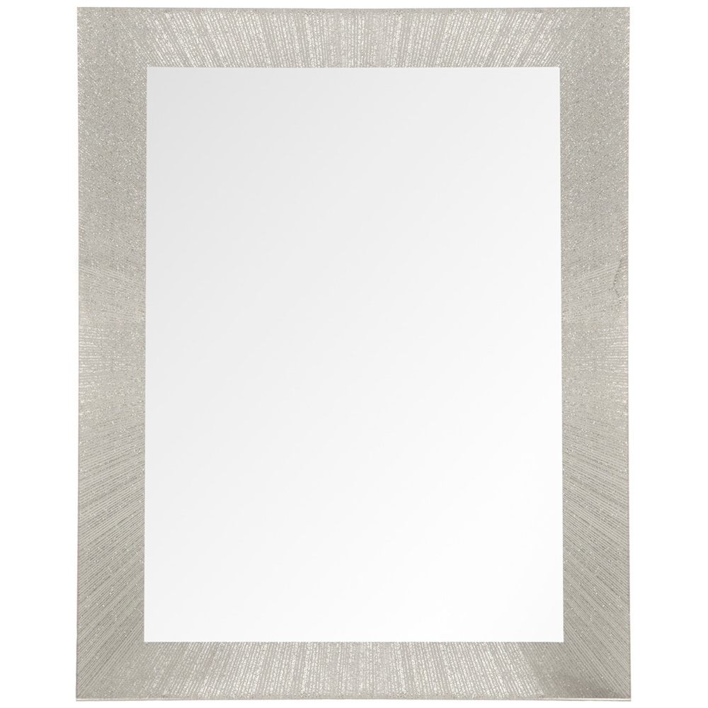 Bordered by lines of silver glitter that shoot from the inner frame to the outer corners, this stunning Silver Starburst Glitter Mirror will add some sparkle to your bedroom or bathroom. Contemporary and glamorous, this mirror will glisten as the light catches it and provide a clear reflection for you to check your appearance.