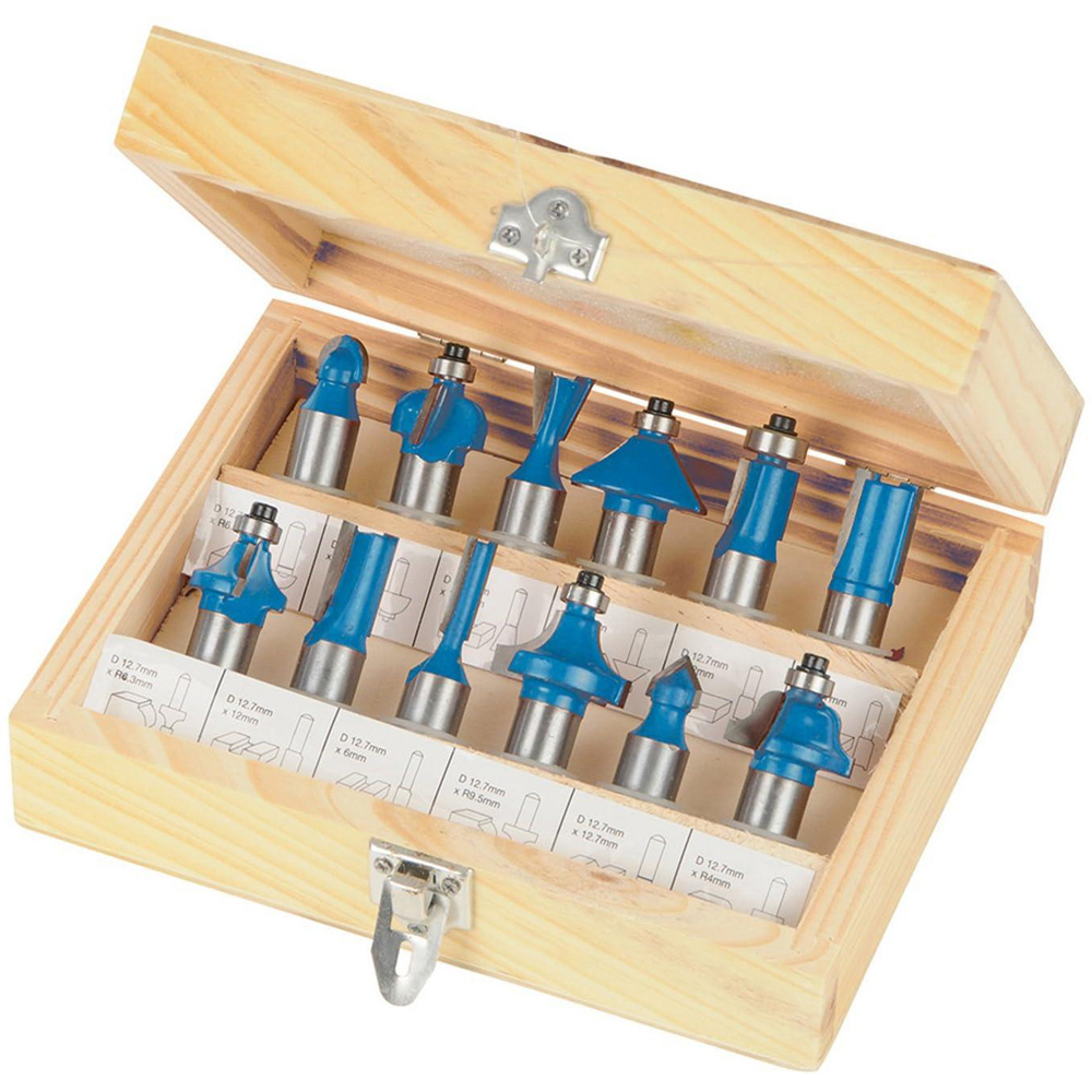 TCT cutting edges. Strong, hardened steel shanks. Strong, hardened steel shanks with TCT cutting edges. Straight: 6 x 20mm, 12 x 20mm, 16 x 20mm, 90-degree grooving: diameter 12.7mm. Material: Alloy Steel Dovetail: diameter 12.7mm, 45-degree. Chamfer: diameter 32mm, bearing flush trim: 12.7 x 13mm.