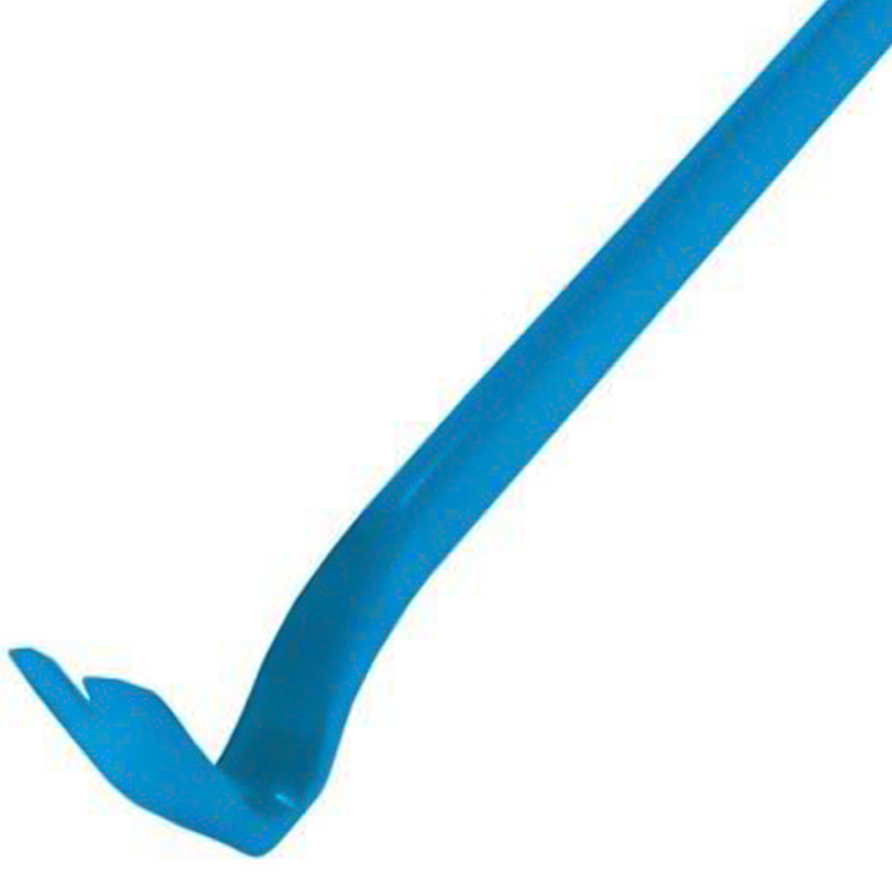 Solid forged, hardened and tempered from oval steel. Powder-coated with ground claw and chisel. For heavy duty wrecking and demolition work. Angled chisel end for leverage. Claw with integrated nail puller.