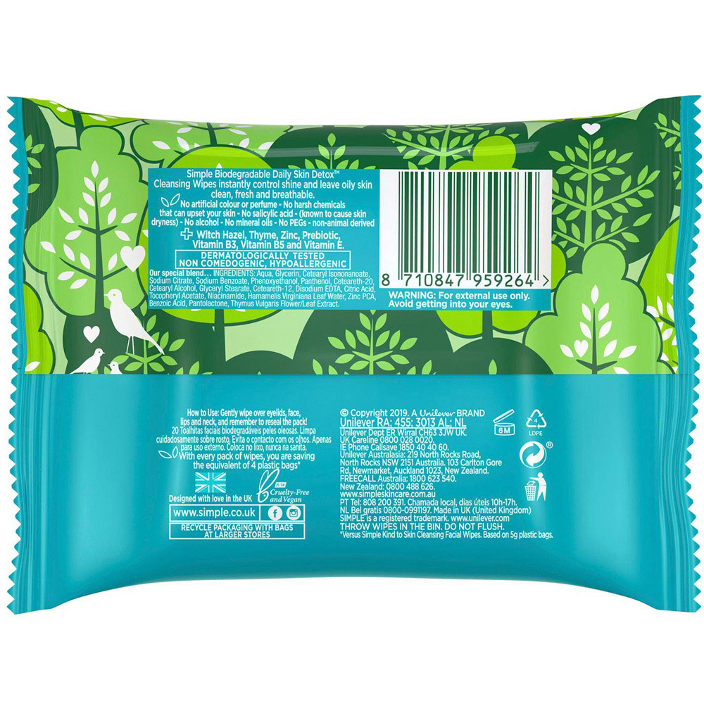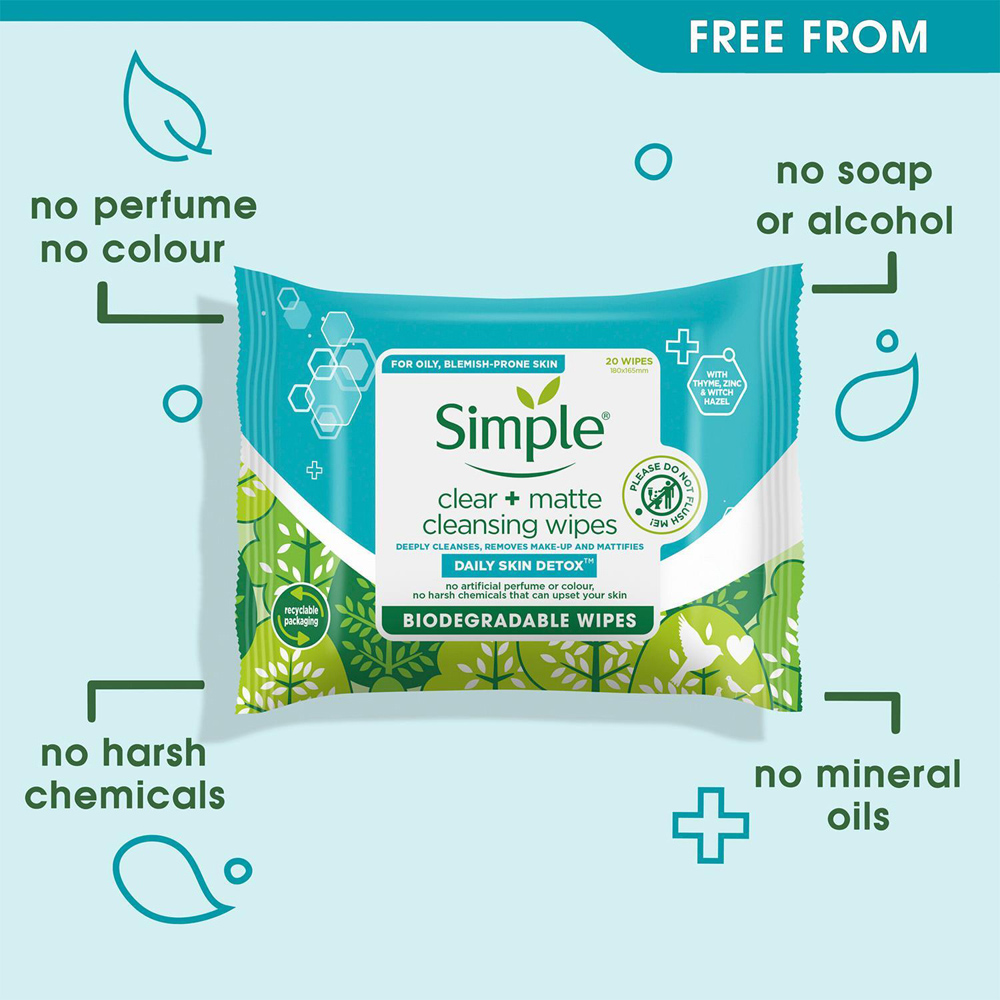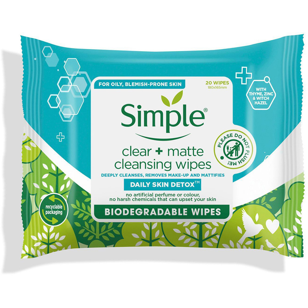 These wipes are specifically designed for oily skin. With just one wipe, they instantly eliminate make-up, oil, and impurities that can lead to blemishes whilst being gentle on your skin. Made with an oil-free, purifying formula and blended with thyme, zinc, and witch hazel, each cleansing wipe acts like a gentle daily detox for your skin, to instantly control shine and leave oily skin clean, fresh and breathable. Each wipe is the perfect makeup remover and face cleanser for on-the-go to instantly control shine and leave skin clean, fresh and breathable. Made with a detoxifying blend of thyme, zinc, and witch hazel to act as a gentle daily detox for your skin. Tough on make-up, dirt, and oil that can lead to blemishes while being gentle on the skin.