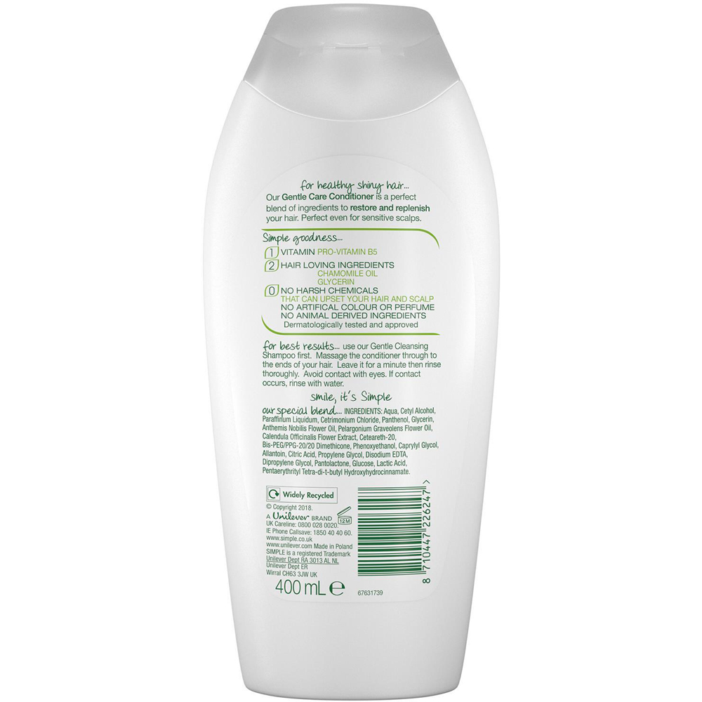 Simple Gentle Care Conditioner is the perfect answer to enrich, nourish, and cleanse your hair without irritating your scalp. It contains Geranium Oil, Chamomile Oil, and Pro-Vitamin B5, which provide your hair with all of the essential nutrients for long-lasting results.
