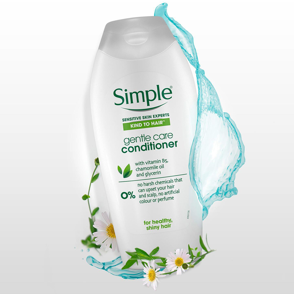 It's Simple, kind to hair gentle care shampoo hair care. with vitamin pro, vitamin B5, three hair-loving ingredients calendula, chamomile oil, and geranium oil and no artificial perfume or colour that can upset your skin. Simple goodness! Simple Gentle Care Conditioner is the perfect answer to enrich, nourish, and cleanse your hair without irritating your scalp. It contains Geranium Oil, Chamomile Oil, and Pro-Vitamin B5 which provide your hair with all of the essential nutrients for long lasting results. It is the perfect addition to Simple Gentle Care Shampoo.