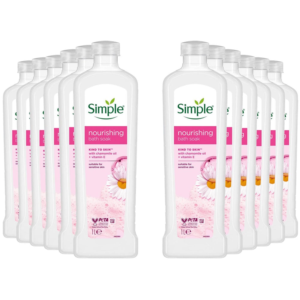 Smile, its simple. Simple has been the expert in sensitive skin care since launching the first perfume and colour-free soap in 1960. Simple says no to artificial perfumes, colours and harsh chemicals that can upset your skin. Instead, only the purest possible, skin-loving ingredients. Choose Simple Kind to Skin Nourishing Bath Soak for hydrated and soft skin. Free from soap, artificial colours and harsh chemicals, this bath product contains a gentle blend of pro-vitamin B5, vitamin E and chamomile oil. The bath soaks are suitable for even the most sensitive skin. How to use: Pour Simple Kind to Skin Nourishing Bath Soak under warm running water to create a rich foam. Pack 12.
