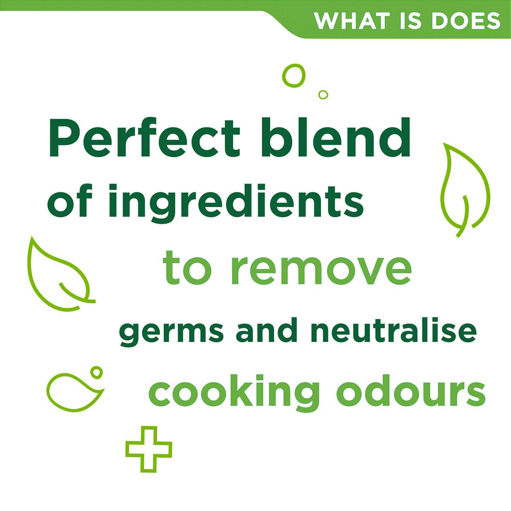 - Removes germs and neutralizes cooking odour