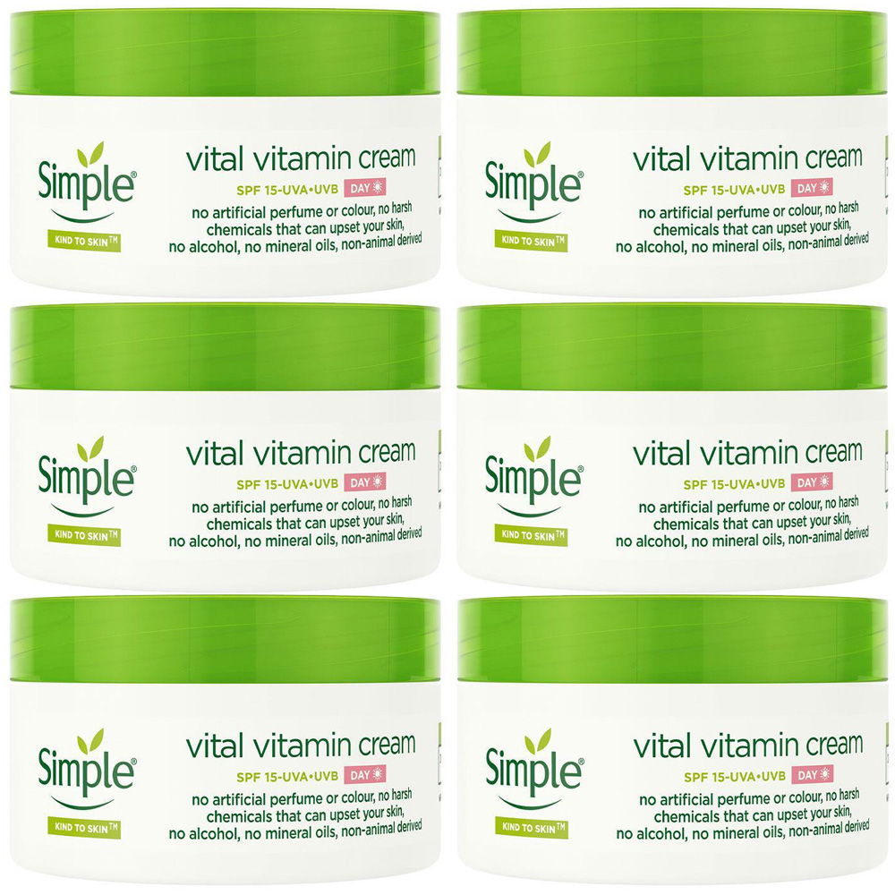 If you're looking for a fresh-faced look or the perfect base for your makeup, Simple Kind to Skin Vital Vitamin Day Cream SPF 15 is an excellent choice to help your skin look and feel its best. This cream is dermatologically tested and hypoallergenic, featuring a blend of skin-loving ingredients that hydrate your skin throughout the day. With SPF 15, it also helps protect you from both UVA and UVB rays, making it a great addition to your sun protection routine. Simple Kind to Skin Vital Vitamin Day Cream provides up to 12 hours of hydration. It includes a special blend of provitamin B5, vitamin E, glycerin, and bisabolol, all designed to keep your skin moisturised and replenished. This day cream is suitable for even sensitive skin. It contains no artificial perfumes, colours, or harsh chemicals that might irritate your skin.