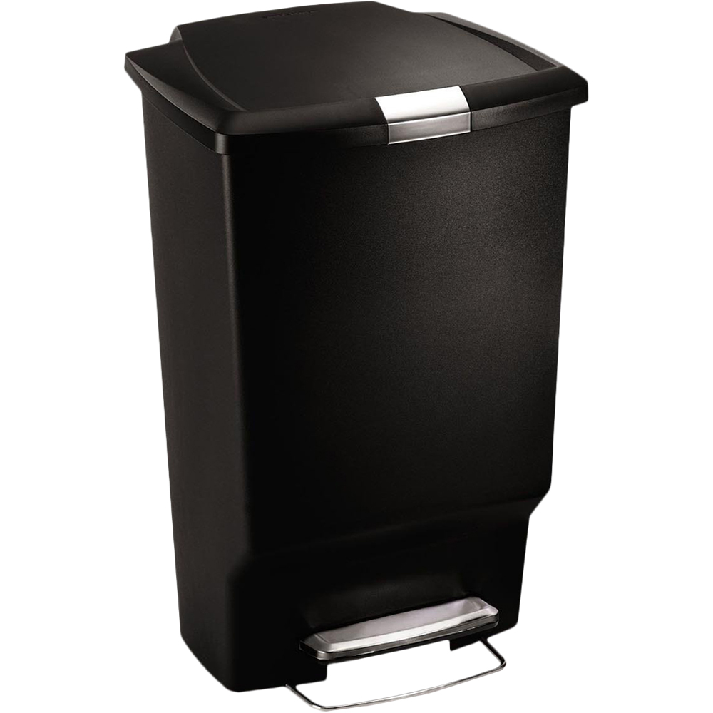 The simplehuman 45L rectangular pedal bin black plastic has a wide opening and a large capacity - ideal for throwing away bulky items. The strong steel pedal is designed to last, and our patented lid shox technology ensures a smooth, silent close every time. A slide lock helps keep rubbish in and pets and curious children out. The simplehuman code K liner fits this bin perfectly - no bunching or slipping for a cleaner experience.