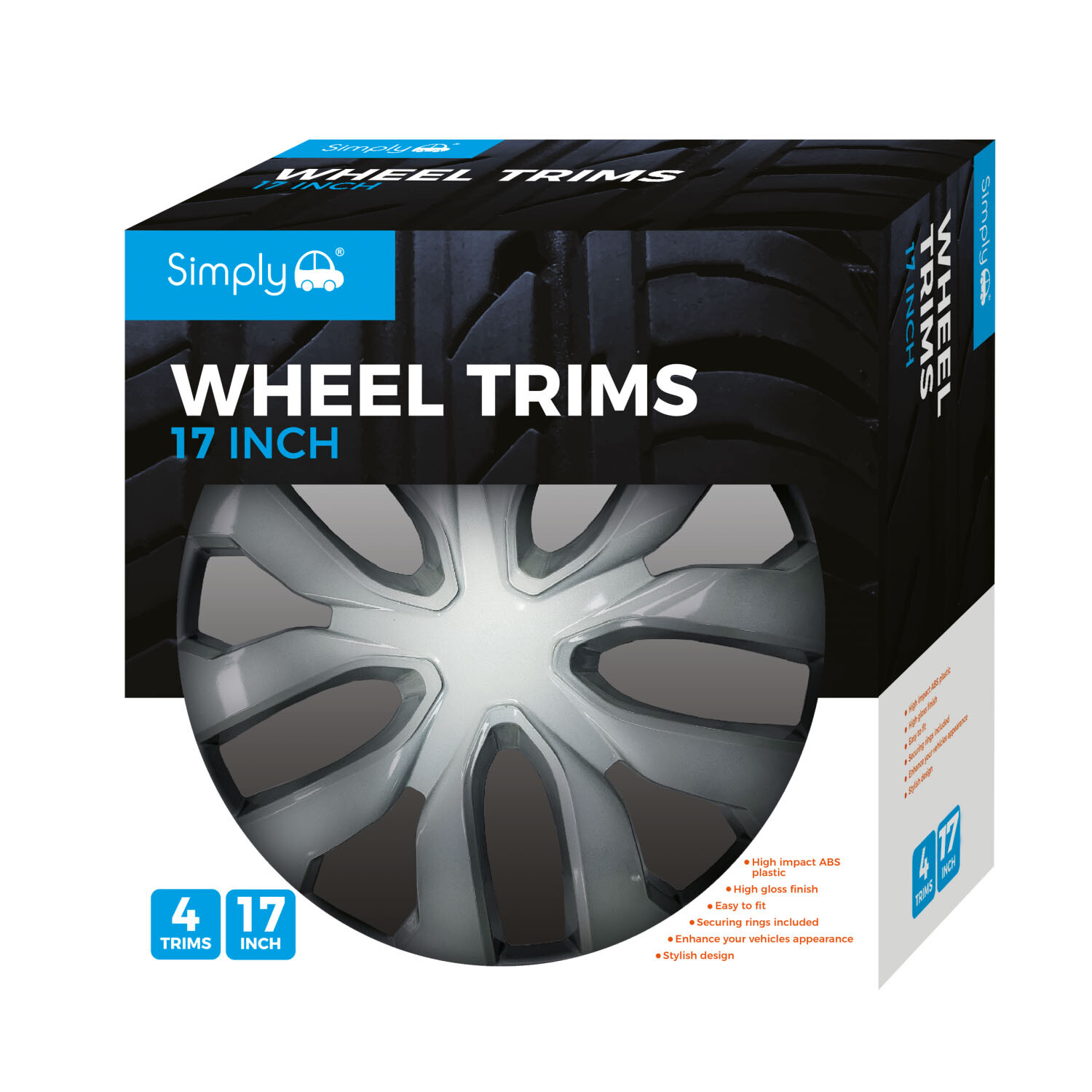 These Simply Auto Wheel Trims 17inch enhance your vehicle's exterior in no time. Made of high-impact ABS plastic, these attractive high-gloss trims are durable and well as stylish. They are also easy to fit and have securing rings included for your convenience. These trims are suitable for 17-inch wheels and come in a variety of styles to best suit your desired look, bringing a whole new aesthetic to your car.