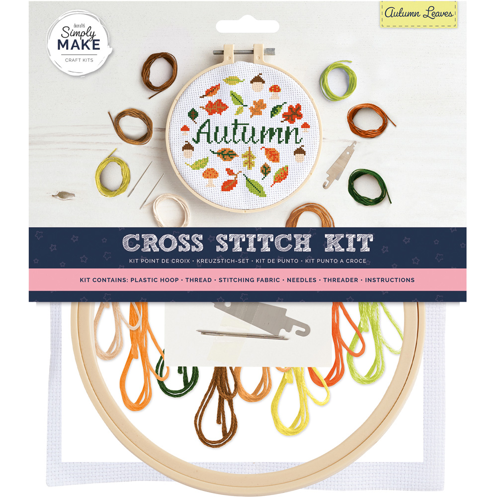 Experience the joy of stitching with the Simply Make Autumn Leaves Cross Stitch Kit. A go-to craft kit for adults, it comes with all the tools you need to create a charming piece of cross-stitch art. With easy-to-follow instructions, it's suitable for amateurs and professionals alike. The kit includes a 203mm hoop, up to eight threads, two needles, fabric, a threader, instructions, and a stitch chart. And is an ideal project and a perfect gift for anyone who loves stitching.