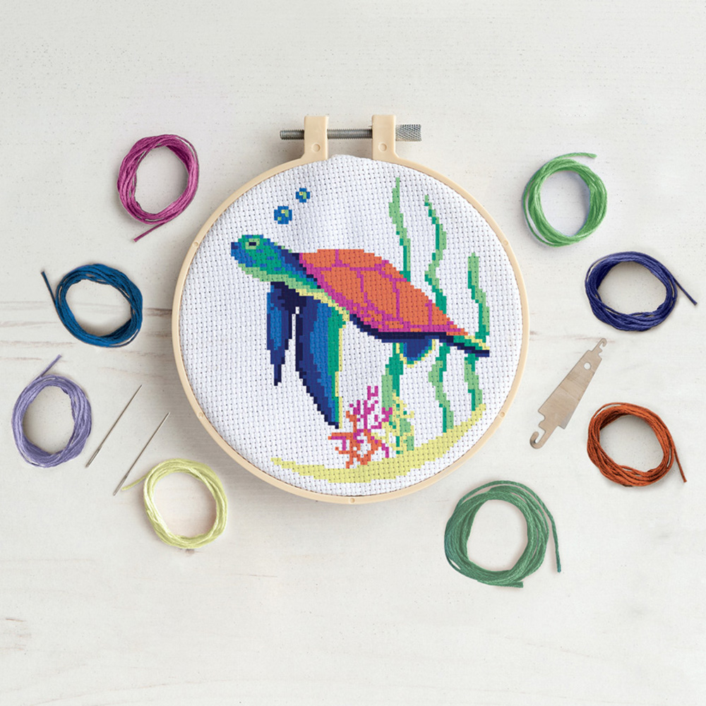 Unleash your creative side with this Simply Make Coral Reef Turtle Cross Stitch Kit. This is a go-to craft kit for adults perfect to make the joy of crafting easy and accessible for all. Easy to use, the kit comes with simple step-by-step instructions to make it suitable for all - professionals and beginners. By combining the timeless satisfaction of craft with modern trends, this kit makes an ideal project, or a perfect gift for friends or family - proving popular all year round. It comes with a hoop, up to 8x thread, stitching fabric, two needles, a threader, instructions and a stitch chart.