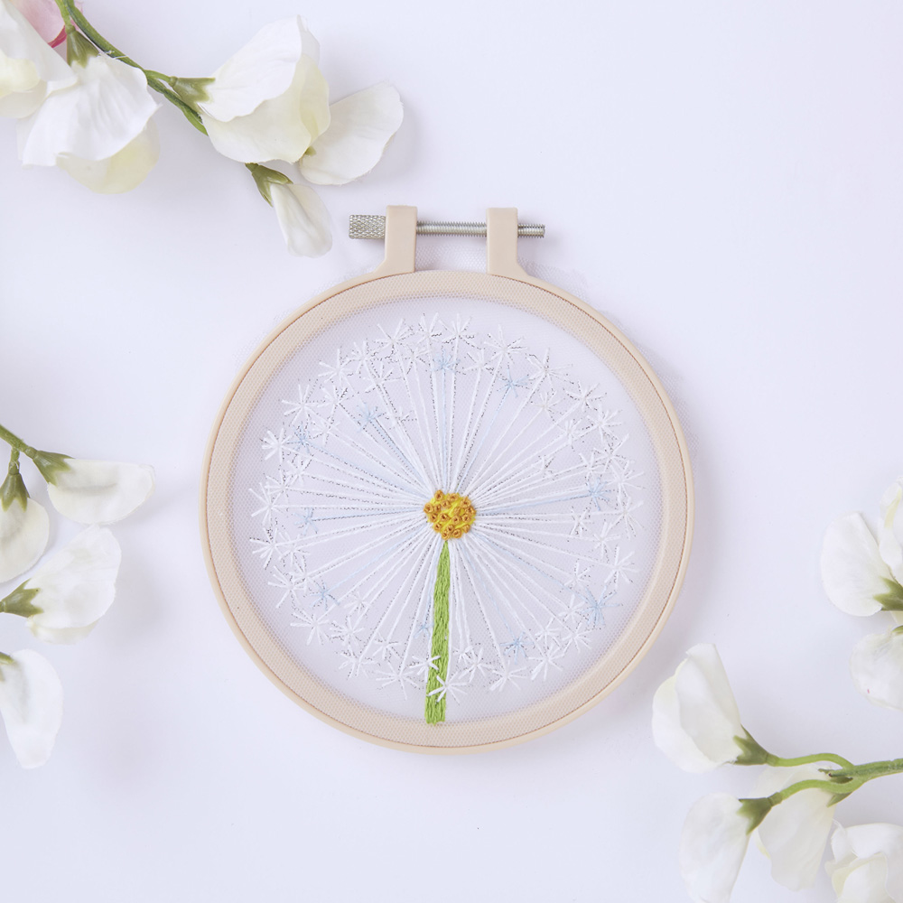 Unleash your creative side with this Simply Make Dandelion Embroidery Craft Kit. This is a go-to craft kit for adults perfect to make the joy of crafting easy and accessible for all. Easy to use, the kit comes with simple step-by-step instructions to make it suitable for all - professionals and beginners. By combining the timeless satisfaction of craft with modern trends, this kit makes an ideal project, or a perfect gift for friends or family - proving popular all year round. It comes with a plastic hoop, threads, stitching fabric, needles, a threader, and instructions.