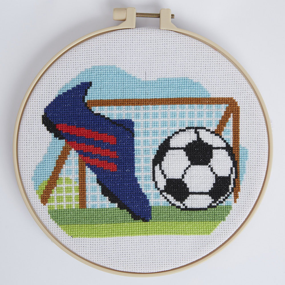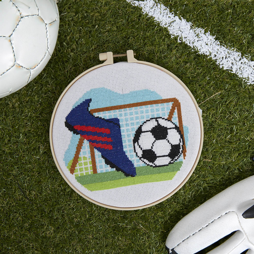 Unleash your creative side with this Simply Make Football Cross Stitch Kit. This is a go-to craft kit for adults perfect to make the joy of crafting easy and accessible for all. Easy to use, the kit comes with simple step-by-step instructions to make it suitable for all - professionals and beginners. By combining the timeless satisfaction of craft with modern trends, this kit makes an ideal project, or a perfect gift for friends or family - proving popular all year round. It comes with a 203mm hoop, threads, stitching fabric, needles, a threader, instructions and a stitch chart.
