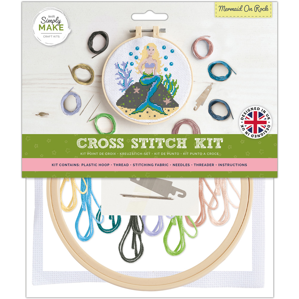 Unleash your creative side with this Simply Make Mermaid On Rock Cross Stitch Kit. This is a go-to craft kit for adults perfect to make the joy of crafting easy and accessible for all. Easy to use, the kit comes with simple step-by-step instructions to make it suitable for all - professionals and beginners. By combining the timeless satisfaction of craft with modern trends, this kit makes an ideal project, or a perfect gift for friends or family - proving popular all year round. It comes with a hoop, up to 8x thread, stitching fabric, two needles, a threader, instructions and a stitch chart.