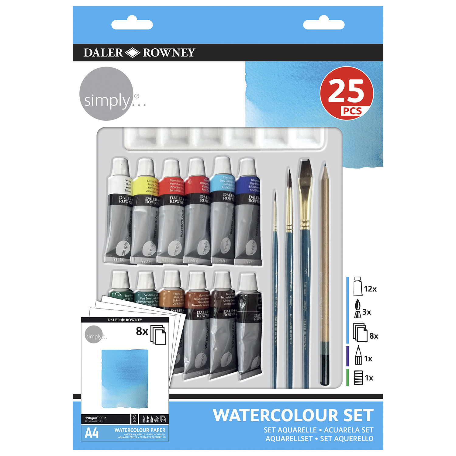 This Simply Watercolour Set is the perfect starting point for artists looking to experiment with the watercolour technique. The colours can be thinned with water to a variety of washes for ultimate versatility and ease of use. This set provides everything you need to flex those creative muscles.