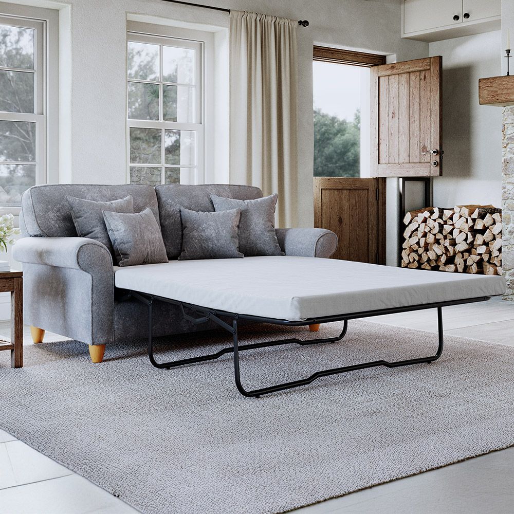 Enhance your living space with the Sinatra Sofa Bed. This elegant sofa bed showcases a classic style, featuring self-piped edges that make it an excellent addition to any room. The high-density resilient foam seat cushions, along with the fibre-filled back cushions, provide exceptional comfort. It is upholstered in luxurious slub chenille fabric, admired for its timeless simplicity, making it a standout in any setting. The soft-touch fabric ensures comfort and can be professionally cleaned.