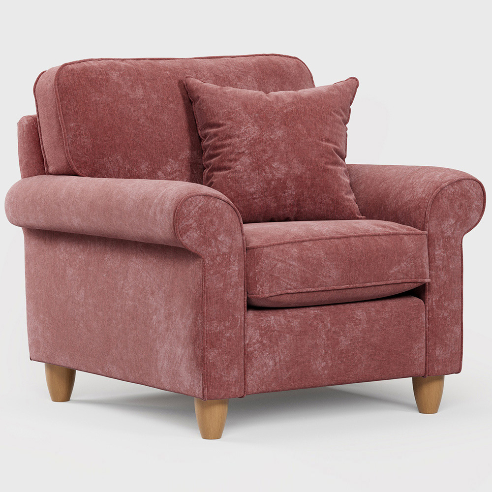 Embrace the pinnacle of sofa design with the versatile Sinatra Glory Deep Terra Armchair, tailored to fit any living space seamlessly. Experience outstanding comfort from high-density resilient foam seat cushions paired with luxurious fibre-filled back cushions. The piece is beautifully upholstered in slub chenille fabric and equipped with pale wood legs. Scatter cushions included. Overall Dimensions: H90 x W123 x D89cm.