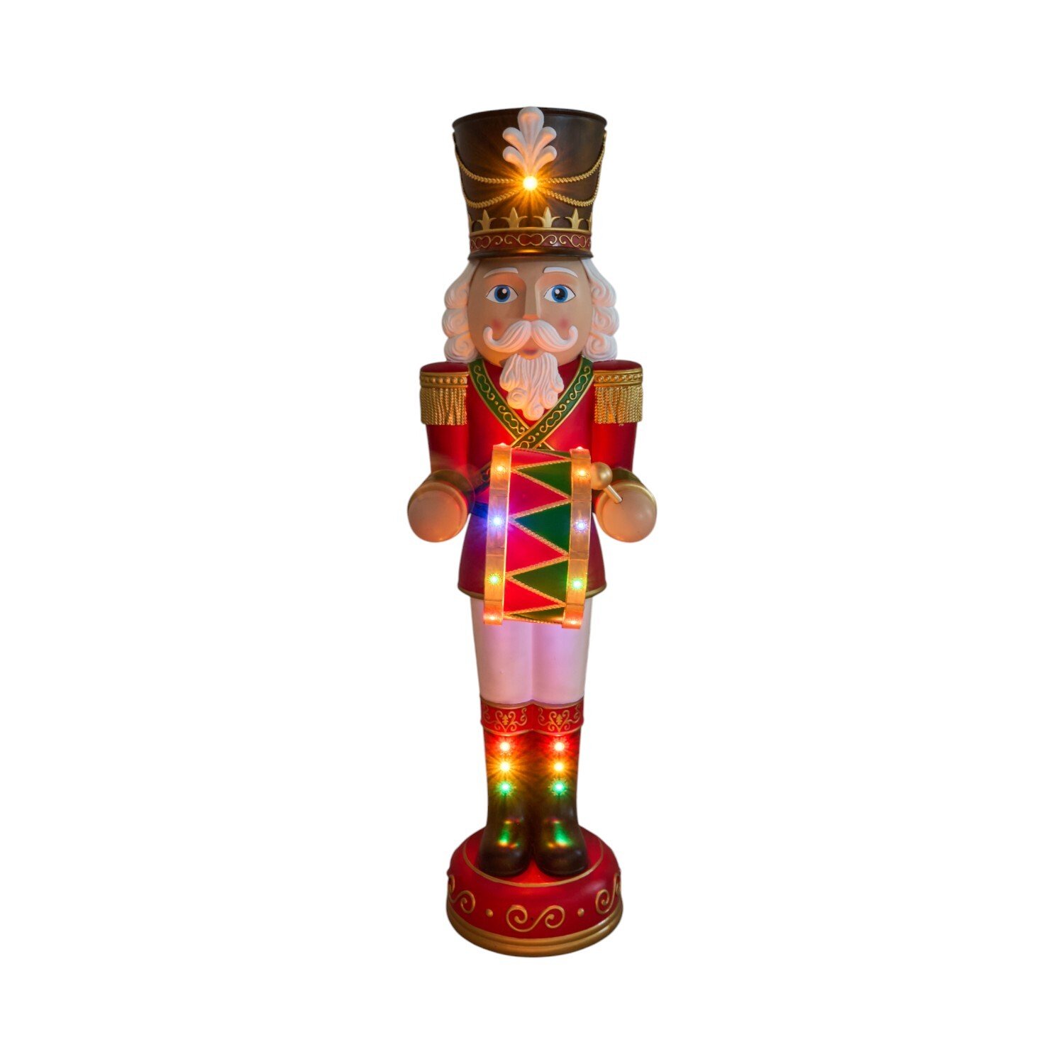 Add festive flair to your home with this Singing and Drumming Nutcracker. This figure comes to life with drumbeats and jolly holiday tunes, perfect for filling any space with holiday charm. Dressed in a traditional outfit in bright festive colours, the charming nutcracker is sure to look great near entrances or next to your Christmas tree. With elegant details and interactive fun, it will instantly make a family favourite for years to come. Equipped with LED lights, this nutcracker brightens up your space in all its glory, leaving everyone impressed.