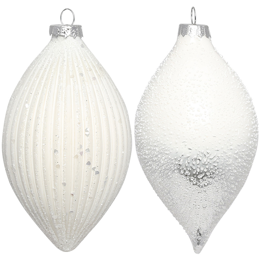 Single Alpine Lodge White Matt Droplet Bauble in Assorted styles