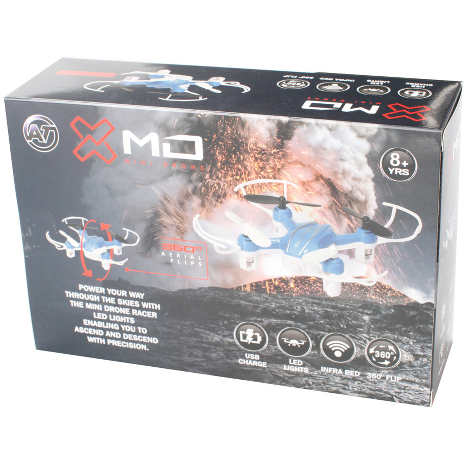 A full 360-degree flip mode means this quadcopter Mini Drone can be flipped in all directions through 360 degrees. This Mini Drone has a large Lithium battery giving you flight times of nearly eight minutes from a full charge and a control distance of about 40 to 50m. The drone has LED lights which means it can be used at night and still be kept track of - perfect for all drone enthusiasts!