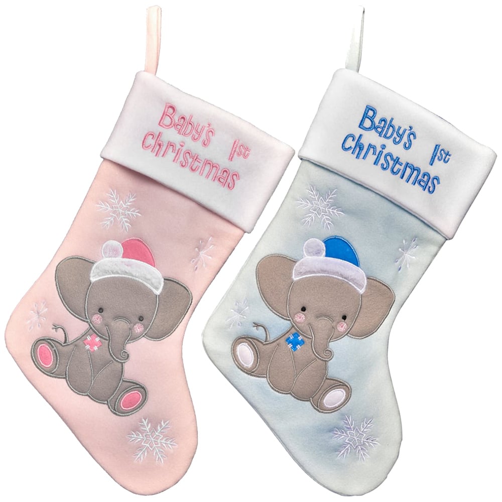 Great for hanging from any fireplace or bedframe, the Baby's 1st Christmas Elephant Stocking is guaranteed to help you celebrate your little one's first Christmas in style. Featuring an adorable pastel-toned design, this fluffy fleeced stocking is perfect for filling with a wide range of must-have gifts and treats. With a durable hanging loop, this lightweight and charming festive essential is sure to help any budding parent celebrate the season in true fashion.