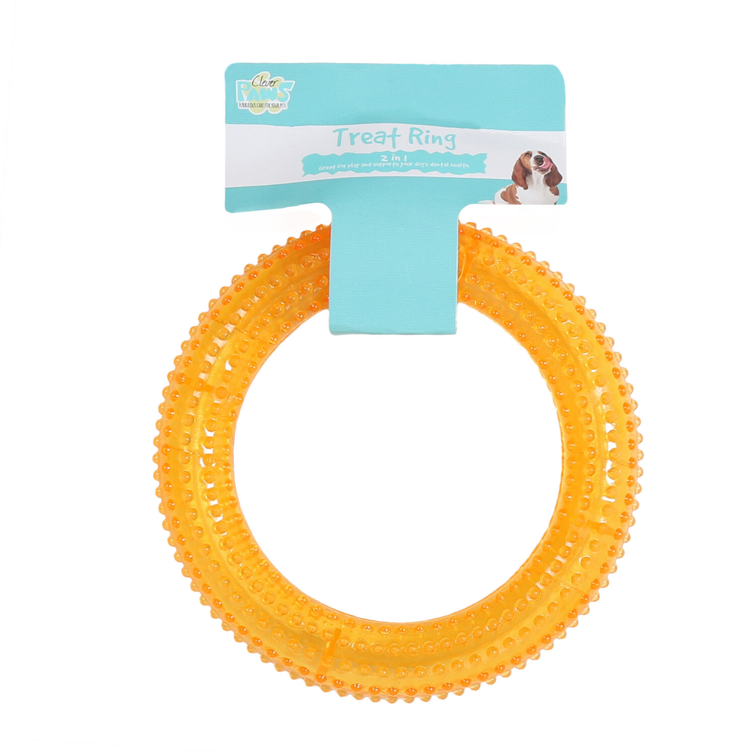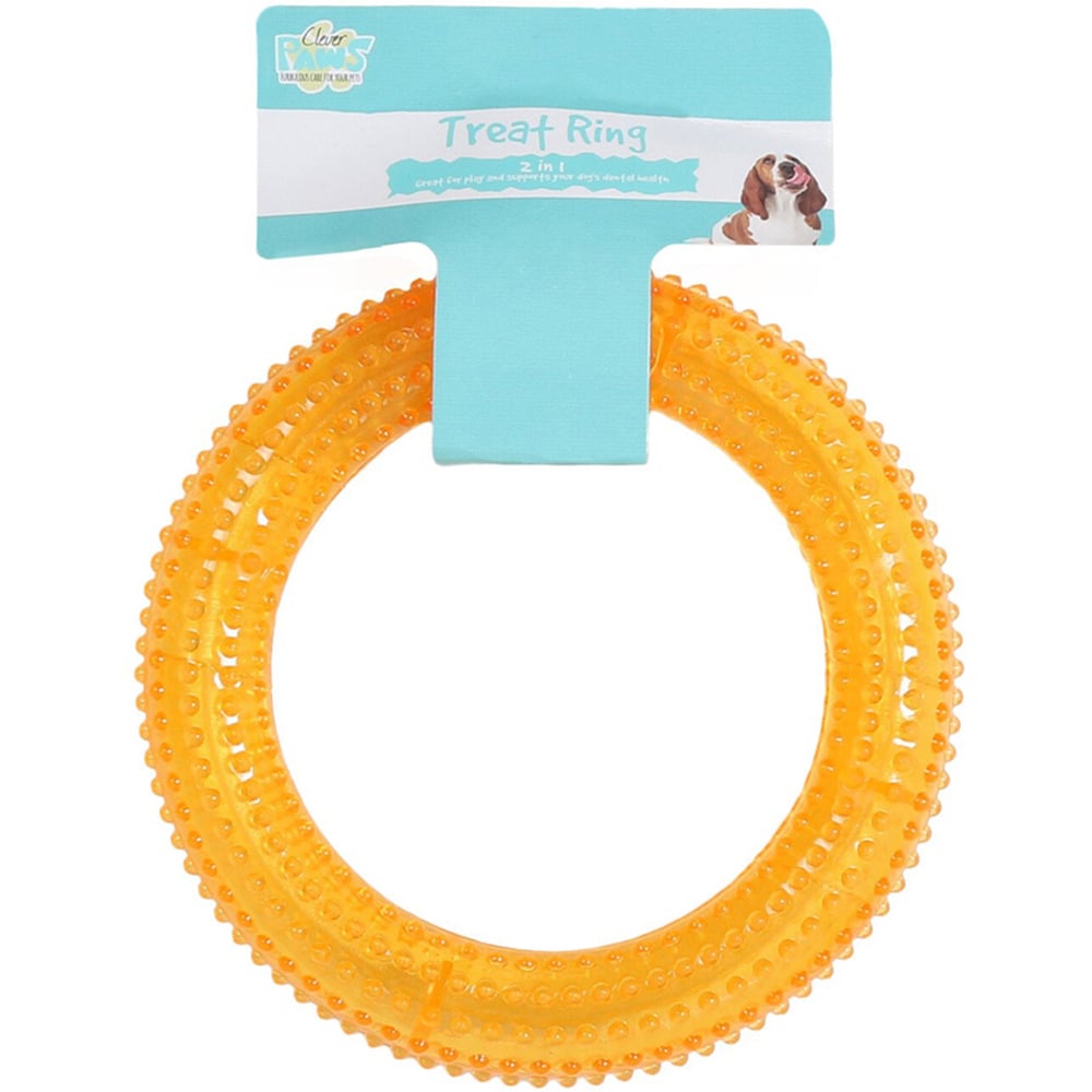 Encourage your dog to have extra fun when they get their next treat by hiding it inside this Clever Paws Dental Ring Treat Dog Toy. They'll be able to smell it but have to find a way in and get the tasty treat out. The spiky outer edge will gently massage their gums as they try to extract their prize, helping keep their dental hygiene in top condition whilst providing them plenty of enrichment.