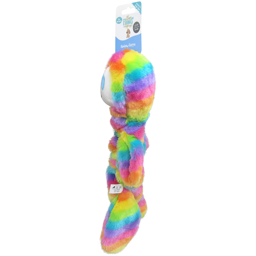 The Unstuffed Rainbow Toy is a great toy for any dog that loves to play! The interactive flattie will provide your dog with exciting playtimes and games whether they're at home or at the park. It has an integrated squeaker that will grab your dog's attention and the soft plush fabric allows your pooch to feel comfortable whilst playing! The elastic interior allows for stretch-and-pull fun, then, when playtime is over, it's perfect for snuggling up to as your dog takes a well-earned nap.