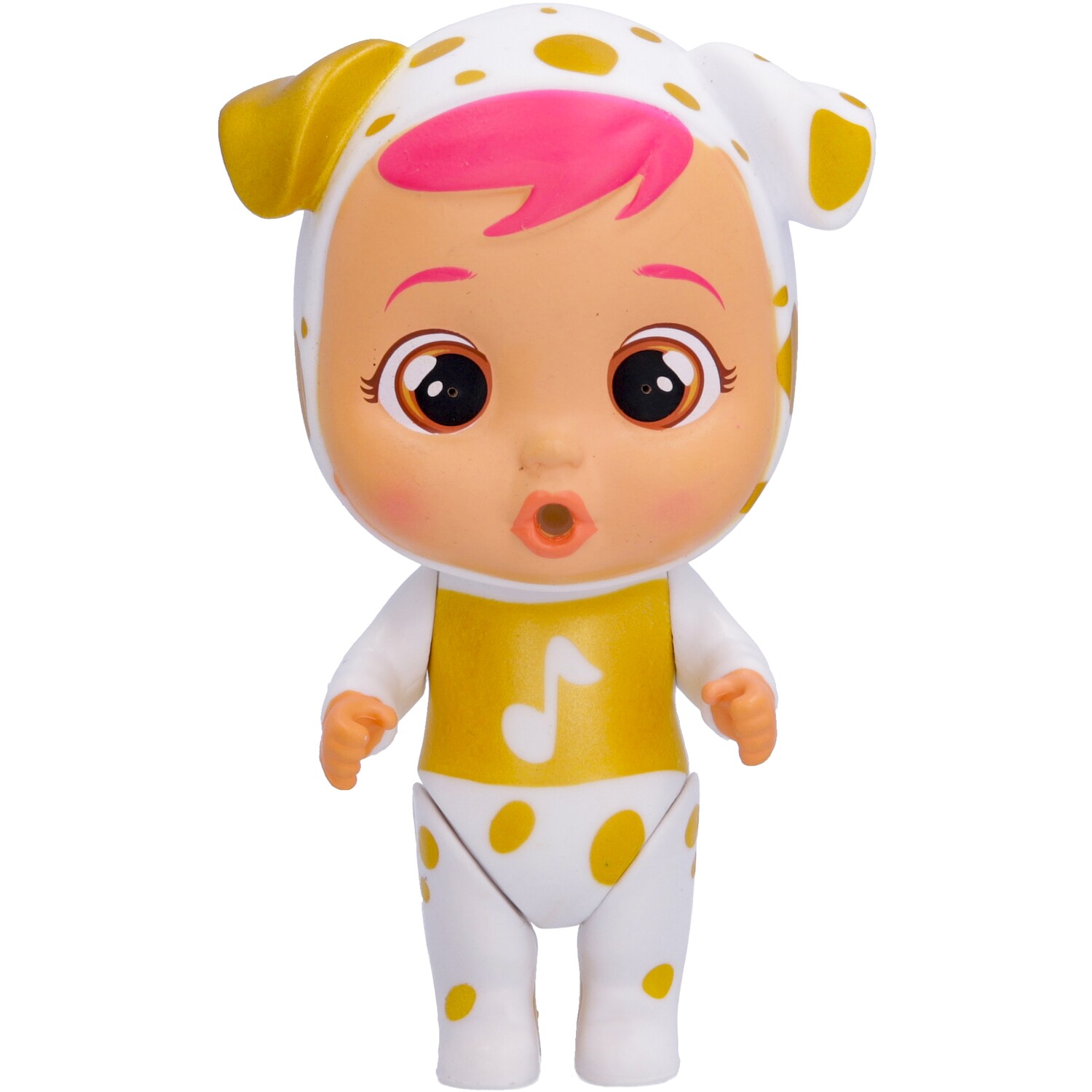 Discover the Cry Babies Magic Tears Music Edition. They are all members of the same band called 'The Tears', the best music group ever! Each doll has a unique band outfit painted to rock out in and an adorable dummy. But that's not all; feed the Cry Babies Magic Tears doll with the baby bottle, squeeze their tummy, and they will cry real golden tears. There are eight characters to collect, so build up your Cry Babies band for the performance of all time.