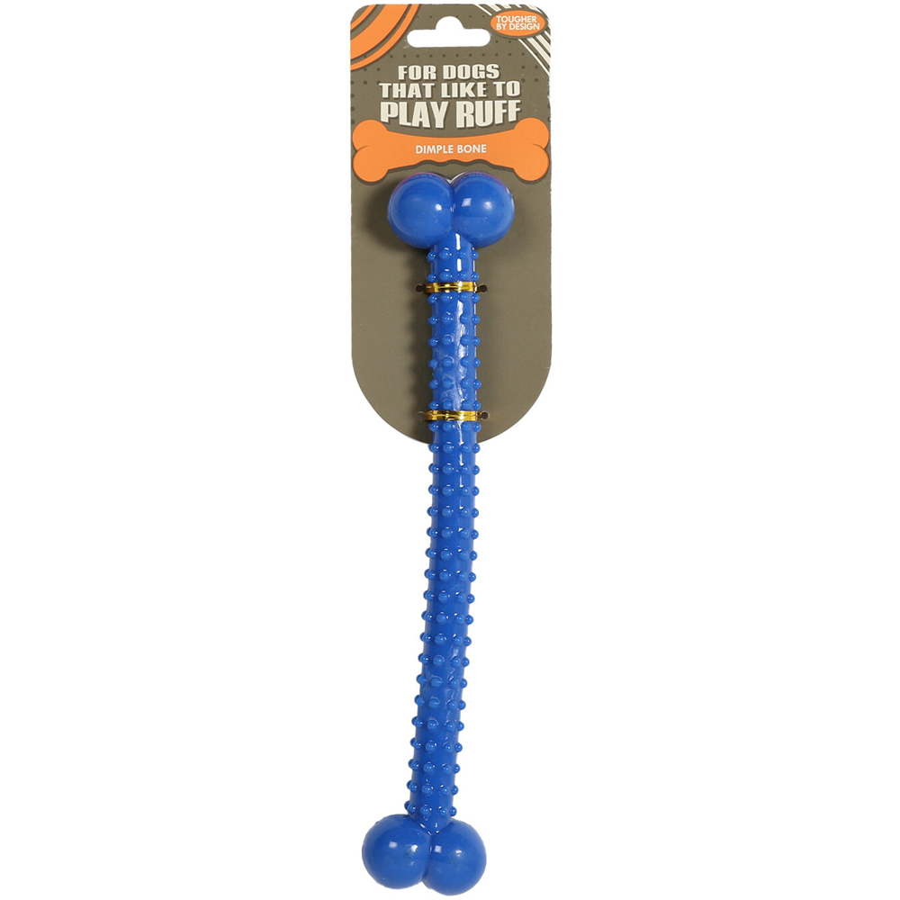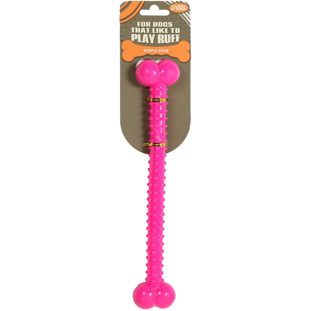 The Dimple Bone Dog Toy is perfect for pups who like to play rough. This tough and resistant toy will lead to hours of fun for you and your furry friend. The nodules along its length help to clean your dog's teeth as they play! Available in a variety of colours.