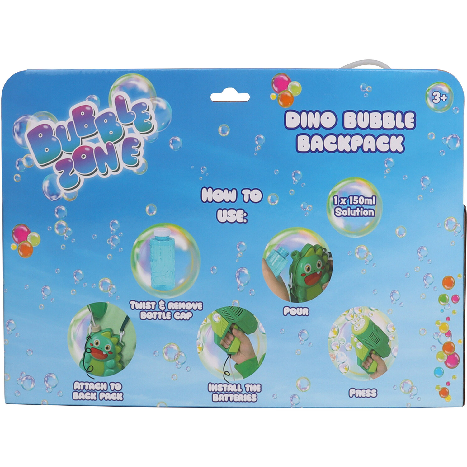 The Dino/Unicorn Bubble Backpack is a wonderful way to entertain kids and have fun outdoors. The bag comes in either a dinosaur or unicorn design and features a bottle of bubble solution for plenty of bubble fun! Attach the bubble gun to the backpack by the cord to create beautiful bubbles to watch, chase, and pop!