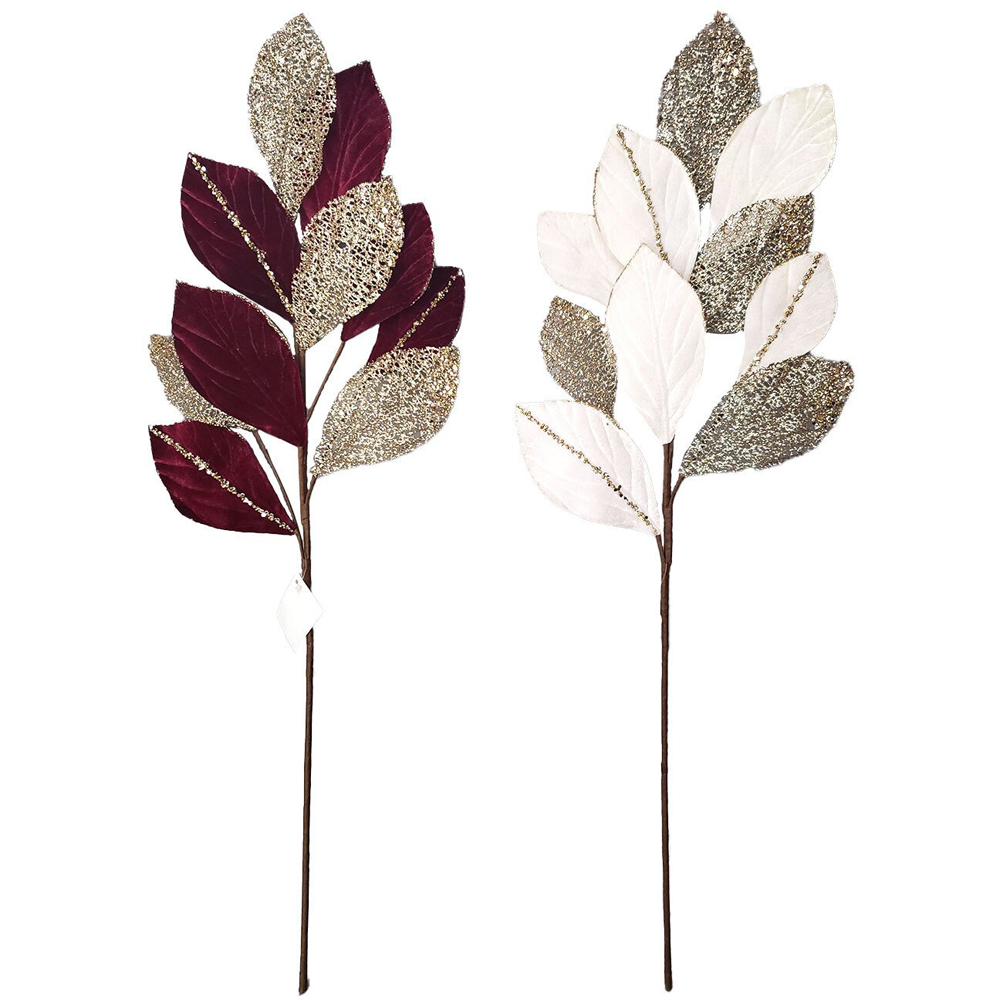 Add a glamorous touch to your wreaths, garlands, floral arrangements and more with this Floristry Champagne Leaf Pick. Coming in an assortment of two designs, one with cream and champagne leaves and the other with red and champagne leaves.