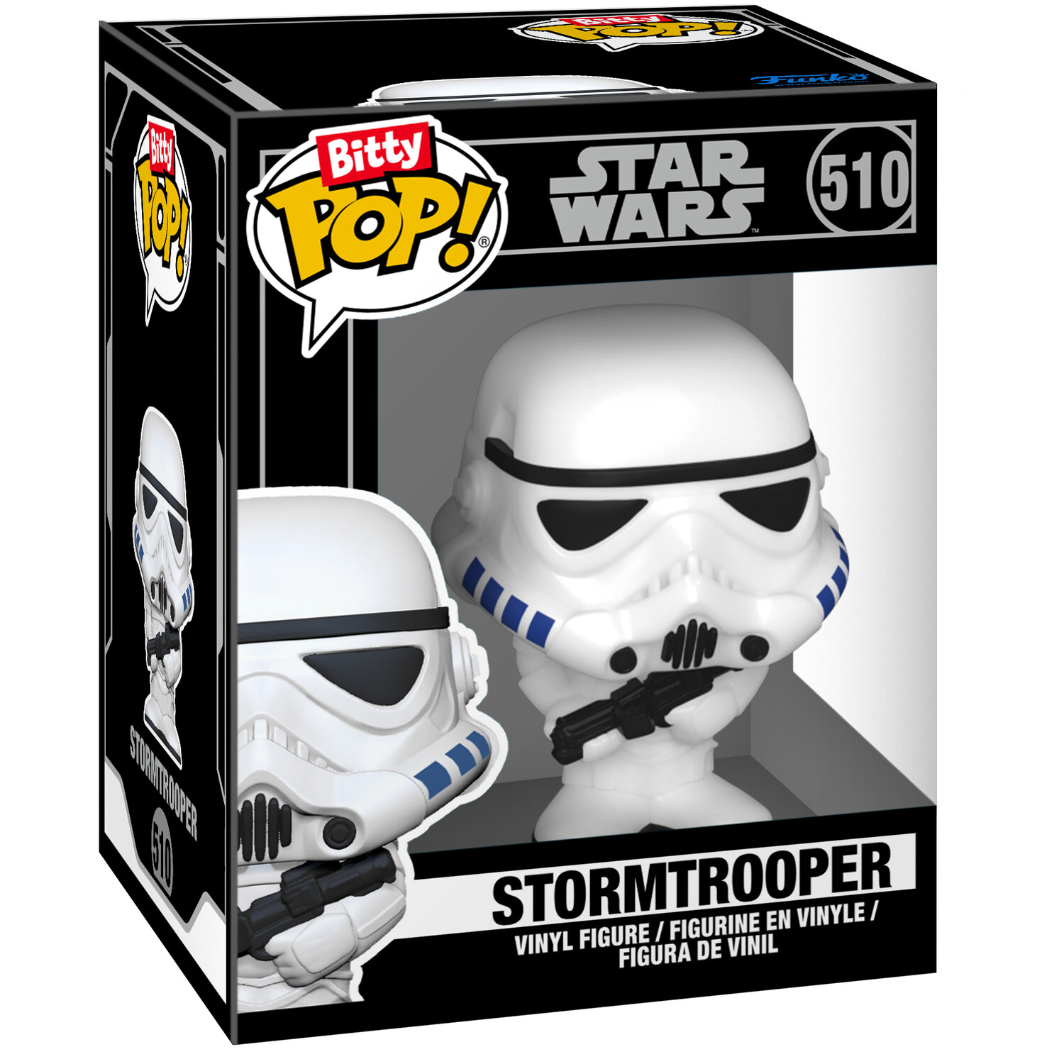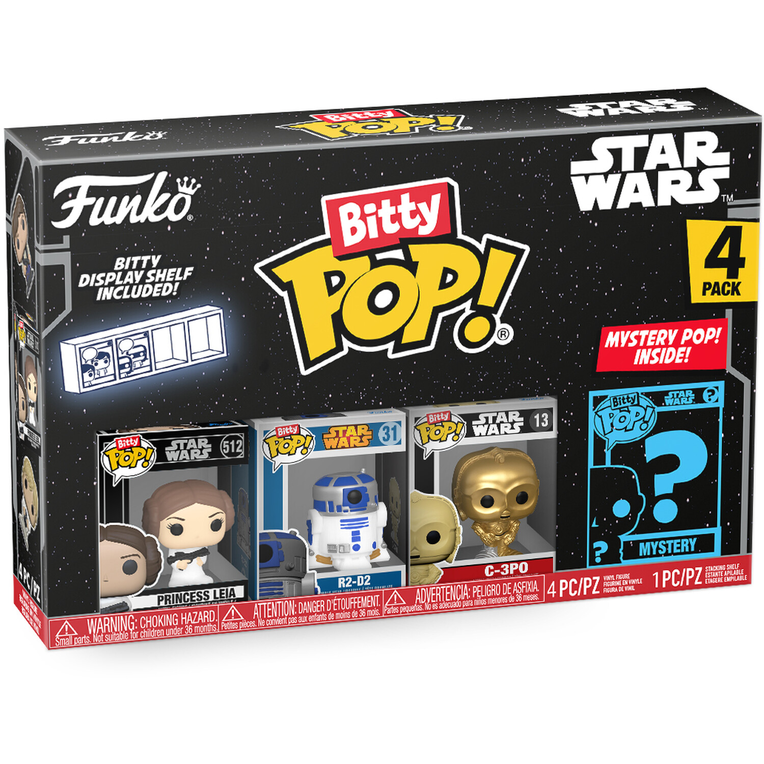 Your favourite Pops! have been shrunk into Bitty Pops! Expand your Star Wars collection with this assortment of Star Wars Bitty Pop! figures from Funko Pop featuring the most stellar characters in the galaxy! There are multiple of these sets to collect, all featuring four detailed mini Pops with an extra special surprise figure. Each set also comes with a handy Bitty Display Shelf, so you can put your Bitty Pop! figures on display immediately. Can you collect them all?