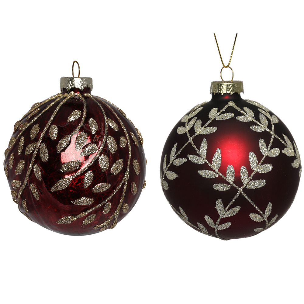 The Burgundy Glitter Leaf Bauble is a charming and luxurious addition to your Christmas decoration collection. The bauble is available in two designs, each with an opulent burgundy tone finished with a glitter leaf pattern that will sparkle under the glow of your festive lights. The bauble is easy to coordinate with your existing decorations and will be an impressive piece for the tree.