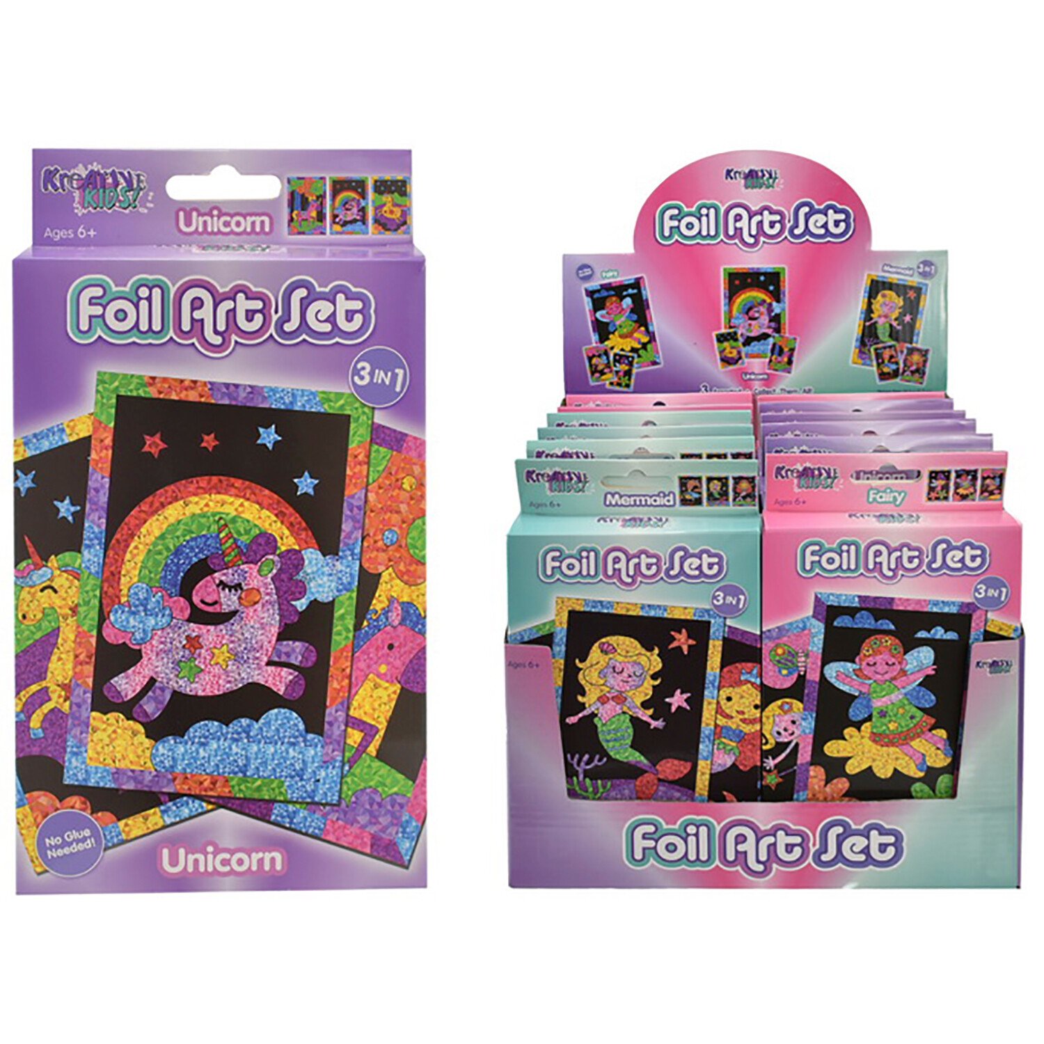 Get creative and make some stunning art with this Foil Art Set. Coming in three styles: unicorn, mermaid, and fairy, with three beautiful pictures in each set, there's no glue needed with this fun creative activity. Perfect for keeping the boredom at bay, once finished, you can keep and display this metallic art in any room of the house.
