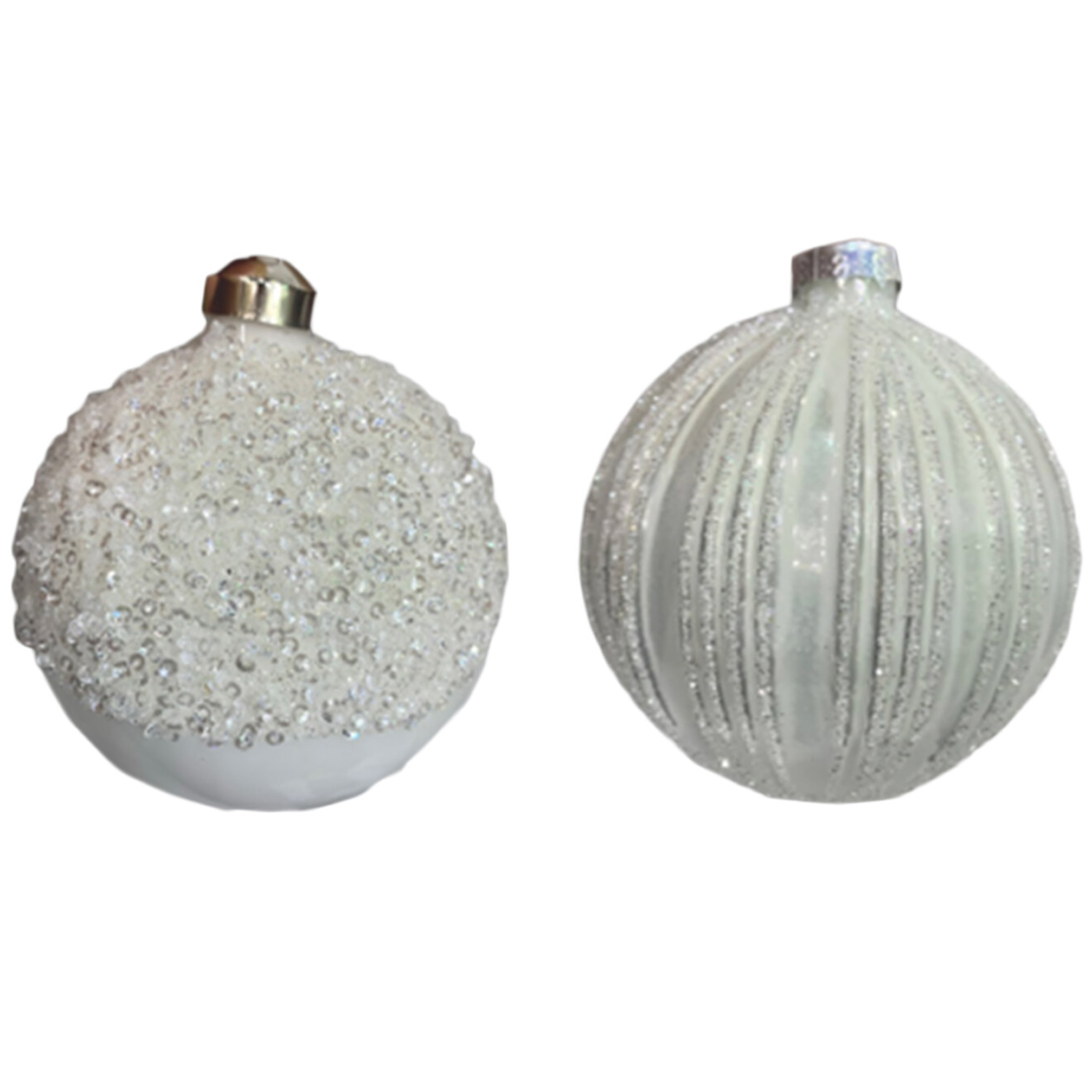 Coloured a soft, chalky white and covered in sparkling silver glitter, the White Glitter Topped Bauble looks like a magical, unmelting snowball. Perfect for anyone trying to bring and elegantly frosty vibe to their festive decor, this beautiful bauble will be easy to hang from a branch of your Christmas tree.