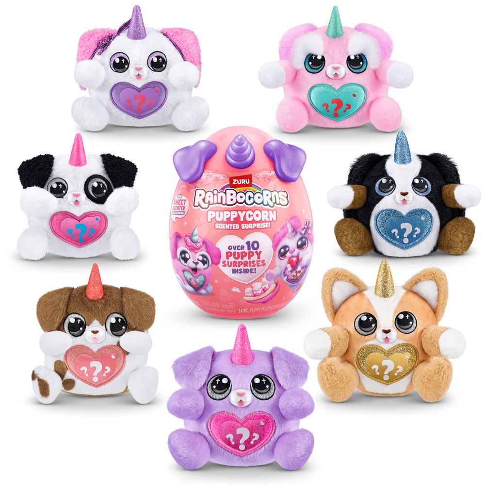 Rainbocorns Puppycorn Scented Surprise are candy-coated cuties with a scented surprise! Designed to look like a unicorn puppy, your Puppycorn includes over ten surprises with sweet fragrances to keep the fun going and tickle your senses. Can you collect all seven Puppycorns?