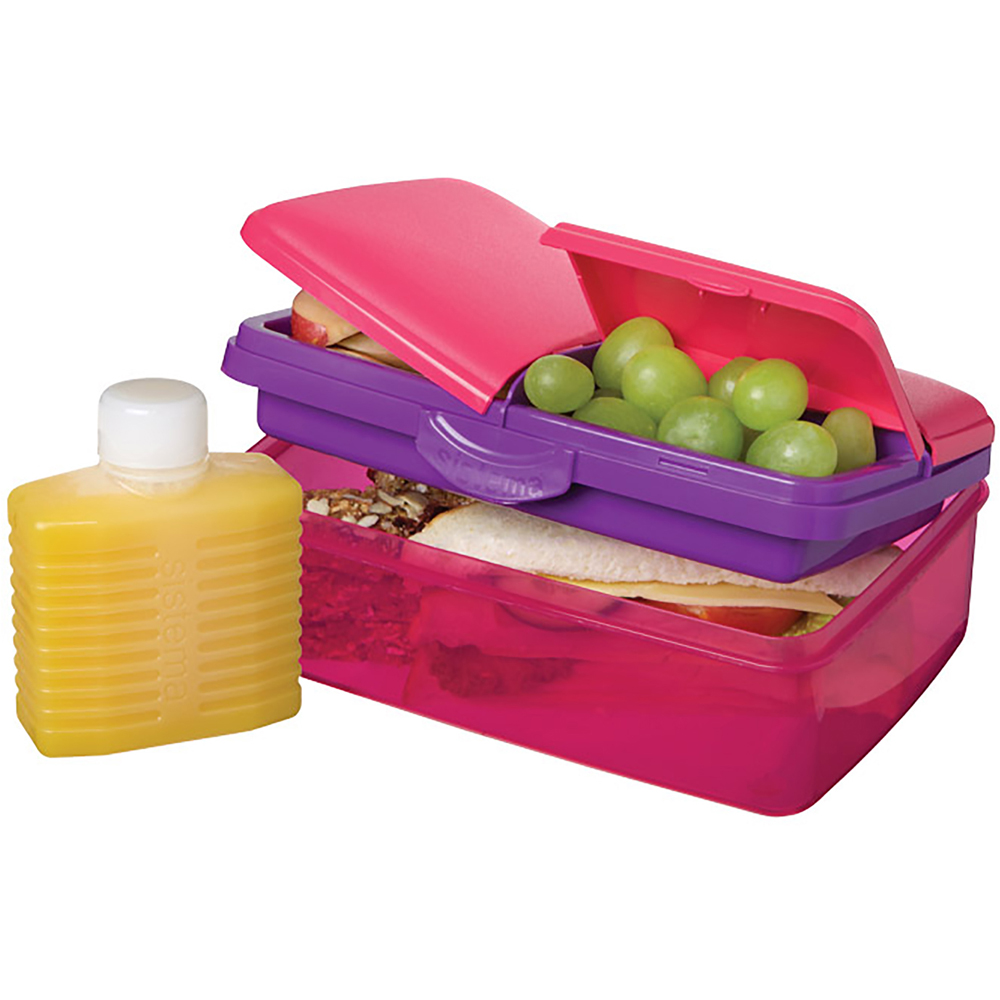 Keep food fresh for longer and easily contained with the practical Slimline Quaddie Sandwich Container from Sistema. With this brilliant storage box you can easily carry food without it spoiling. This practical box comes with four compartments; 1 larger one for sandwiches, 2 smaller ones for snacks and a section containing a drinks bottle. The lid features easy to use clips with an inner seal to keep the container sealed tight, ensuring your food can be stored for longer. This brilliant little box is perfect for lunches and snacks, or simple keeping for refrigerated or frozen for a later date.