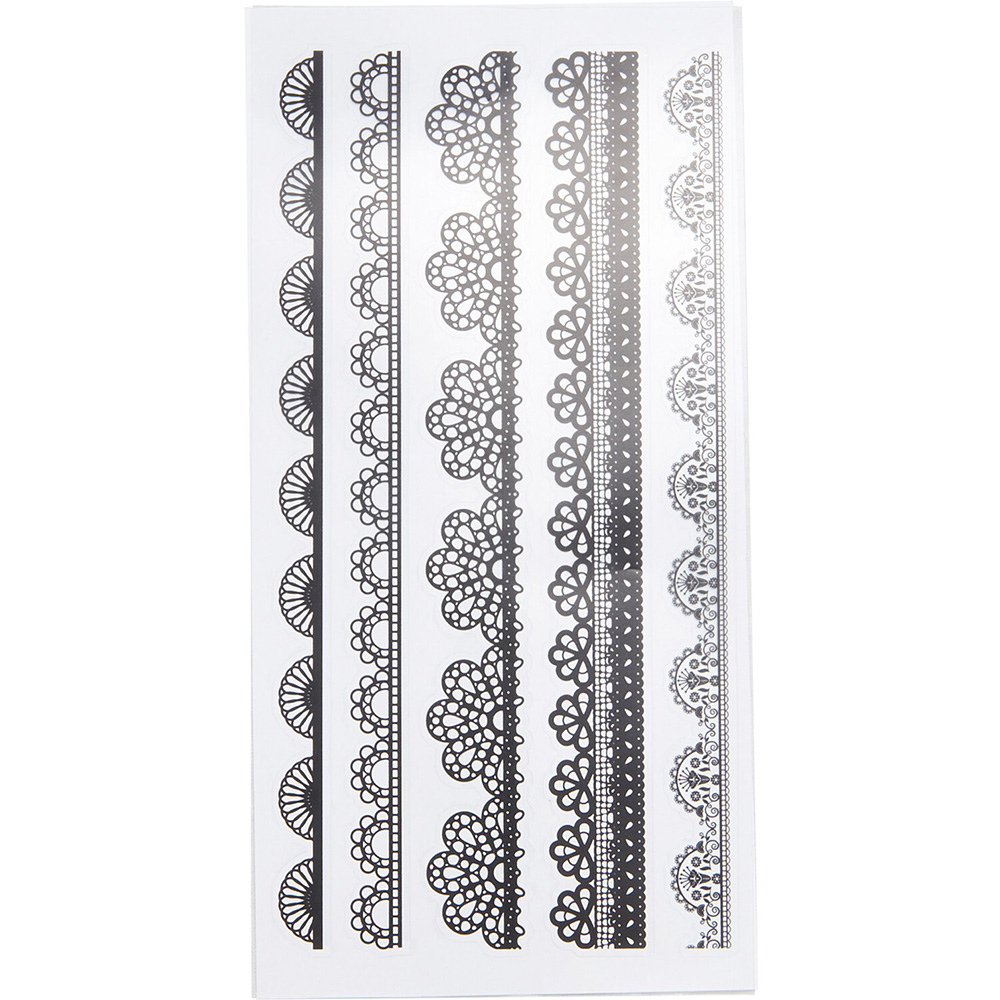 Give a perfect touch to your crafting projects with the True Moments lace border stickers. These lace stickers are perfect to add elegance and style to your presents, art projects and more. Featuring five distinct designs, you can use them for a variety of decorative purposes. The beautiful laces are available in an assortment of black, white or rose gold colours.