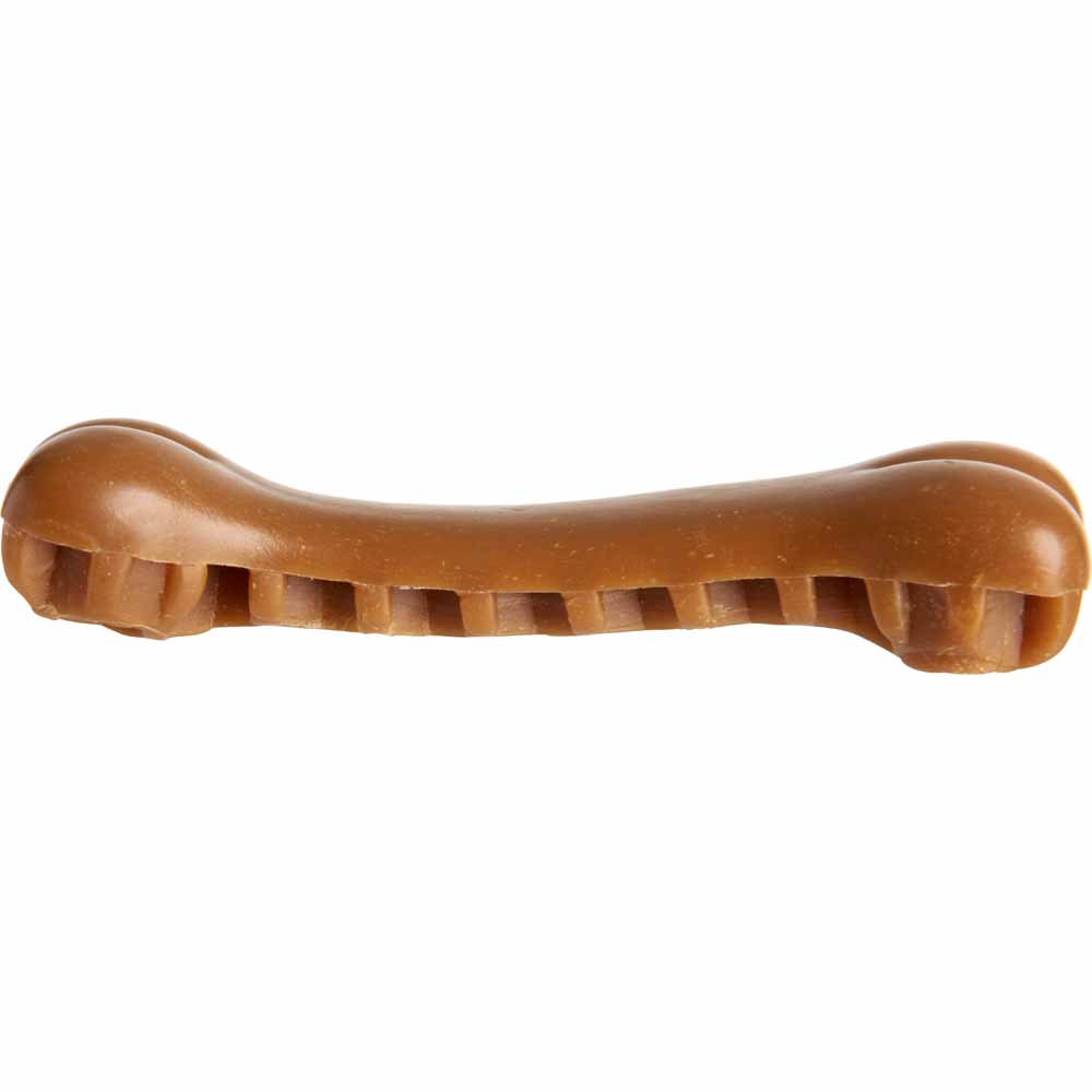 Our hex-a-bone is a complementary pet food for dogs. Made with real chicken and vegetables, your dog will love this tasty bone. It helps clean teeth and gums. It will also satisfy the natural chewing aid for dogs. Our hex-a-bone is a gluten-free food and contains no artificial colours or flavours. Feeding guide: To be fed to your dog as a treat. We recommend no more than one of these treats a day regardless of the size of the dog. Fresh drinking water should always be available. Store somewhere cool and dry. Composition: Sweet potato flour (40.9%), Pea flour (28%), Chicken (14%), Vegetable glycerine, Calcium carbonate, Dried brewers yeast, Vegetable oil. Additives. Technological; Preservatives. Analytical constituents: Protein 8%, Crude Fibre 3.5%, Crude Fat 2%, Crude Ash 5%, Moisture 15%.
