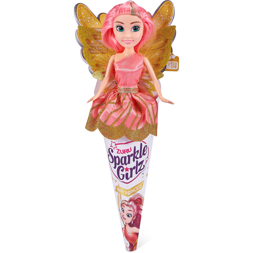 Meet the Sparkle Girlz Fairy Princess! This gorgeous Fairy Doll has the most sparkly and colourful wings in the Sparkle Kingdom, allowing her to make friends with all the magical creatures! Each doll has a unique look and personality, bright hair, and a glittery outfit, matching her wings perfectly! The long-coloured hair is super soft, smooth, and perfect for brushing and styling, and the dolls are poseable, too! There are three gorgeous fairies to collect - which will be your new best friend? Take your new fairy friend with you everywhere, fly her and pose her to show her off to all your friends! All outfits and accessories are interchangeable with other Sparkle Girlz dolls.