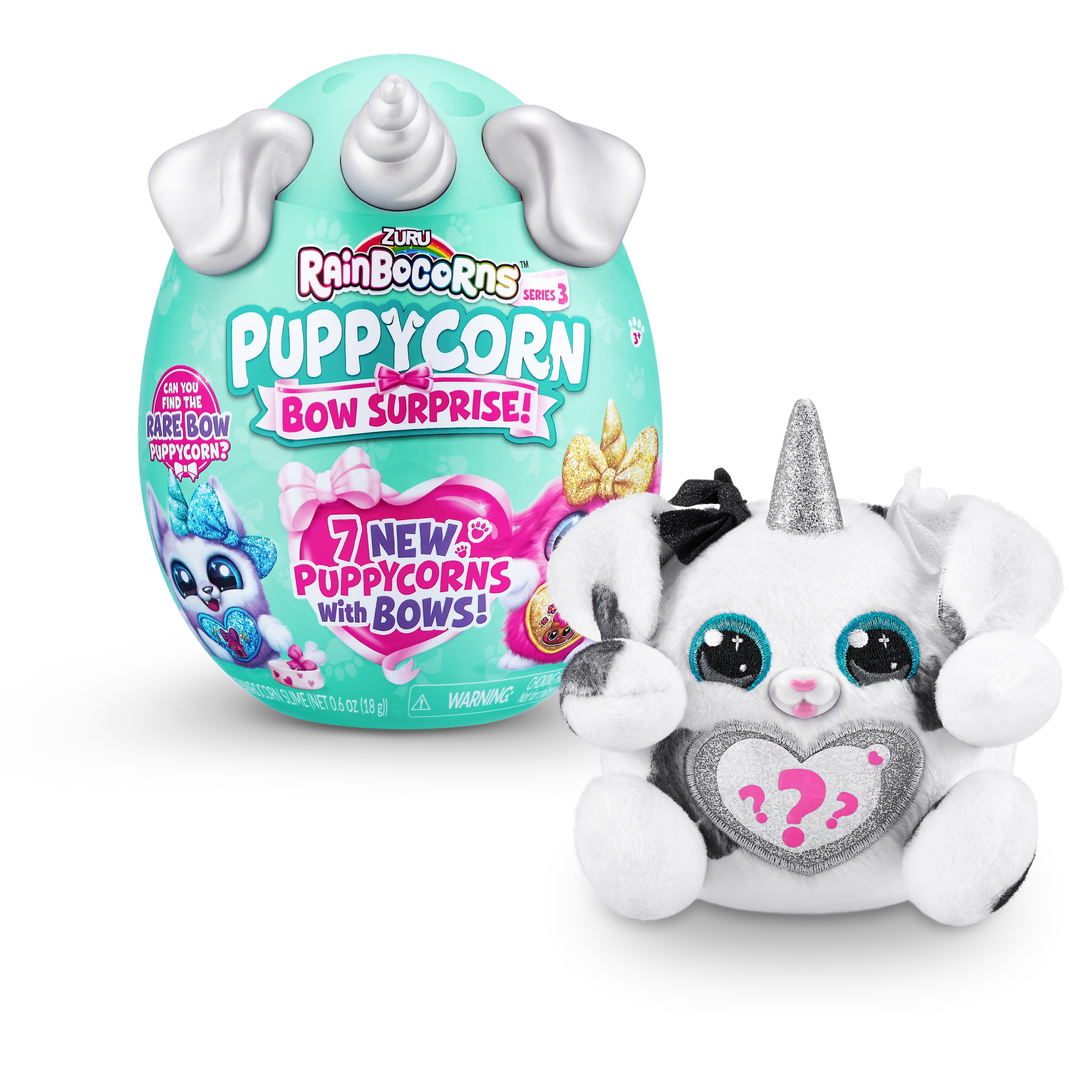 Meet the most beautiful Puppycorns in Rainboville, Puppycorns Bow Surprise! These Puppycorns have a passion for fashion, are wearing beautiful bows, and can't wait to be your new furry friend! Use the Peel and Reveal heart to learn what your puppy pal loves, and pop open the mini Boo-Boocorn egg to meet their mini me! Five surprises are packed inside this Rainbocorns egg; get cracking to meet your new bowed-up buddy!