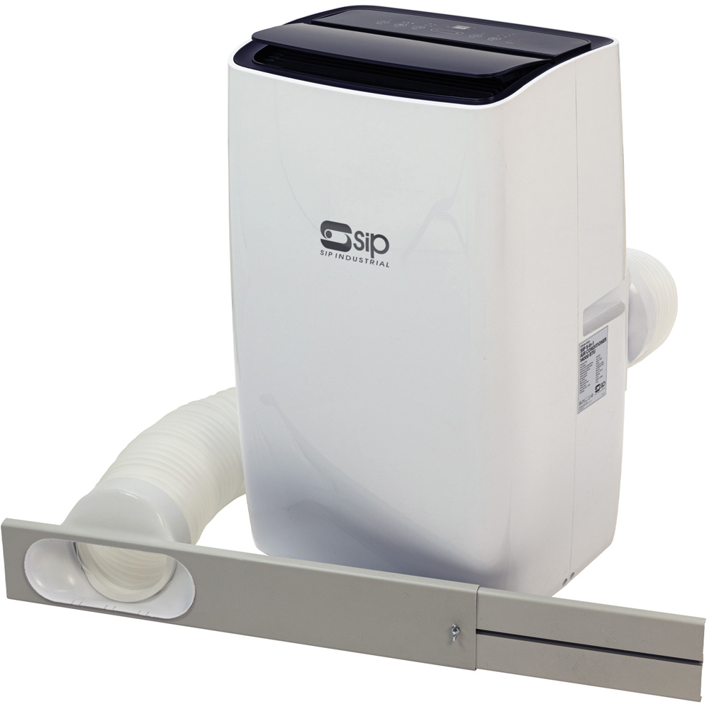 The SIP 5-in-1 air conditioner 14,000 BTU is a multi-purpose mobile air conditioning unit designed to effectively circulate cool and hot air to maintain a consistent temperature in a variety of indoor spaces. 5 low noise operating modes include cooling, heating, dehumidifying, fan, and automatic, offering year-round application use. An auto swing function helps to distribute air evenly. For added convenience, a remote control allows easy navigation through the different operating modes and settings, while a front panel LED display indicates room temperature and is visible at night or in darkened rooms. Applications and uses: provides cool and hot air conditioning to indoor spaces. Humidity control using dehumidifier mode. Ideal for office, home, and workshop environments. 5 powerful operating modes at high BTU rates for effective air conditioning: cool mode offers an adjustable target temperature down to 15°C (14,000 BTU / 4kW). Heat mode has an adjustable output temperature of up to 31°C (10,000 BTU / 3kW). Dehumidifier mode removes moisture from the air with max. Capacity of 1.5L/hr (external collection required). Fan mode operates as a 3-speed cooling fan without engaging the climate control functions. Auto mode engages the internal temperature sensor to initiate either the heat, cool, or fan modes based on the temperature parameters set by the user. A timer, sleep mode, and child lock function can also be selected. The intuitive digital control panel allows easy navigation through modes and settings: and the remote control provides additional user convenience. Front panel LED display indicates room temperature and is visible at night or in darkened rooms. Castor design allows the unit to be easily moved and positioned between locations for use: allowing full movement in a variety of rooms and spaces for added flexibility. Accessories supplied: an attachable 1.5mtr expanding air duct and window adaptor allow hot air to be discharged outside. SIP two-year standard silver warranty.