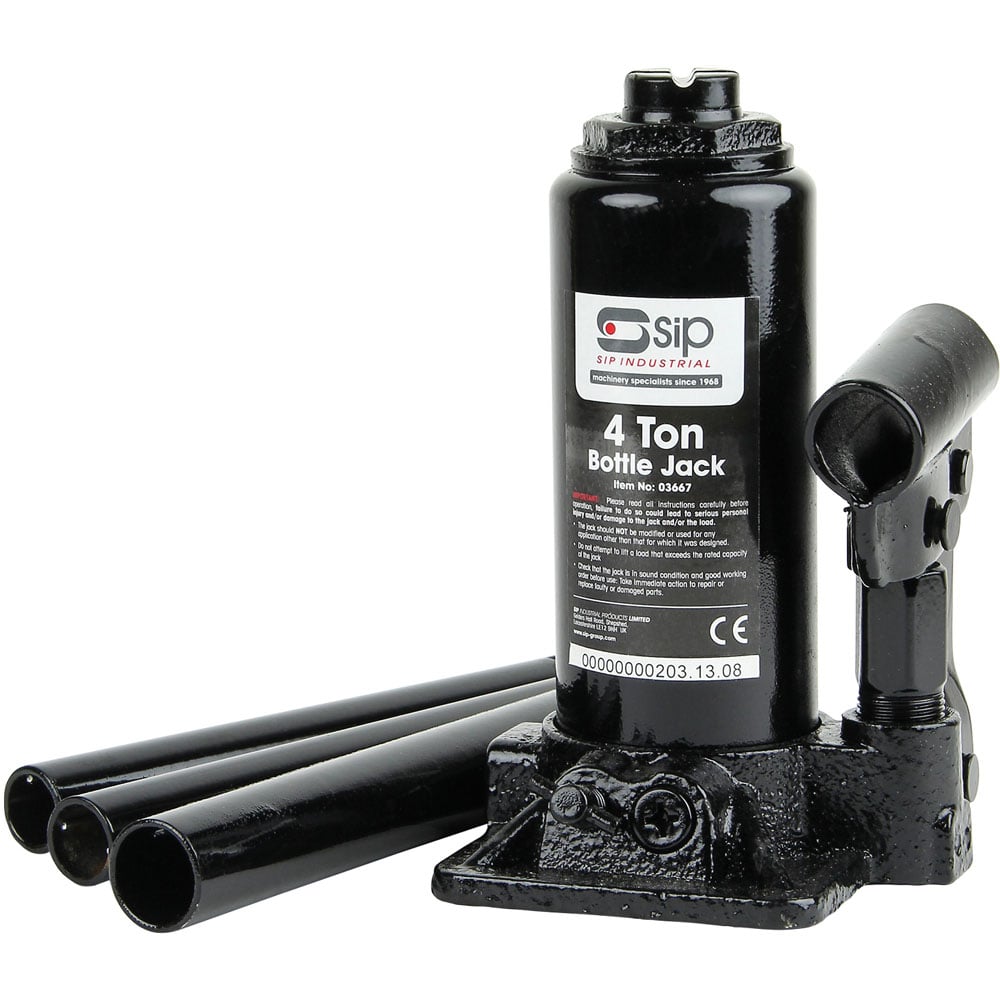 The SIP 4 Tonne bottle jack offers optimal stability and load support to a wide range of vehicle and machinery types, including cars and vans, thanks to a variety of robust and durable components that provide heavy-duty and reliable performance. A durable serrated saddle ensures the safest load contact possible. This, coupled with a wide base manufactured from heavy-duty cast iron, means that the jack can offer continued and extremely reliable and powerful lifting performance. The bottle jack is designed with reliable overload protection for reduced risk of damage to the jack, increased user safety, and added peace of mind. The maximum weight capacity is 183mm to 354mm adjustable lifting height, with a 60mm screw extension for increased versatility, a serrated saddle for safe and secure load contact, a wide base manufactured from heavy-duty cast iron, overload protection, and a built-in safety valve. It features a compact design for a reduced physical footprint and is ideal for all garages and workshops, along with a SIP two-year standard silver warranty.