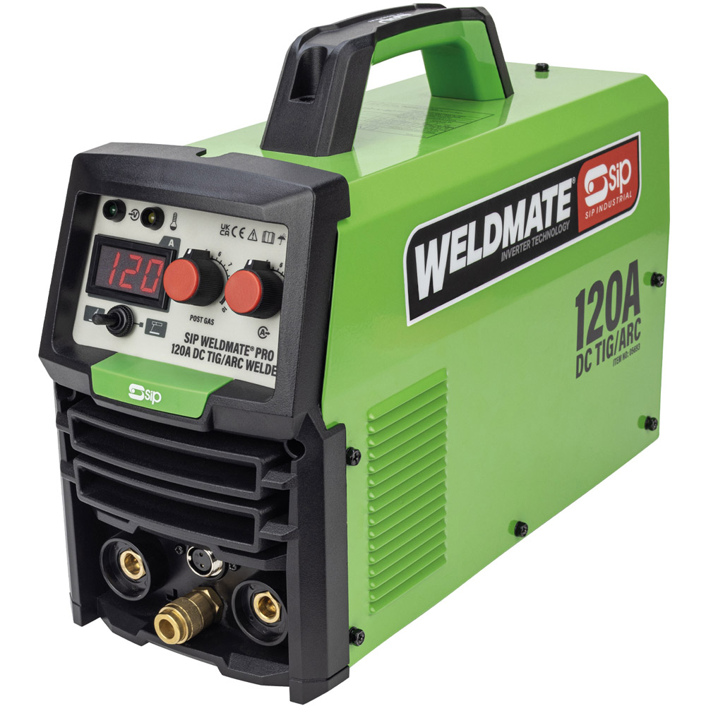 The SIP WELDMATE® PRO 140A ARC/TIG Inverter Welder is a dual process inverter welder specifically designed for use in fabrication workshops. Featuring Synergic Control which adjusts the welding current output according to the electrode diameter selected for optimal penetration and bead formation. Powerful, compact and lightweight, this welder also operates from a 230v (13A) supply for added flexibility. Fully compliant with Reg EU 2019/1784 (Eco Design for Welding Equipment), this welder features a 4th generation inverter which is above 80% energy efficient. This means it uses less power at the same output as older inverters, helping to lower operating costs. Applications & uses: Ideal for use in fabrication workshops. Perfect for sheet metal applications. Suitable for home workshops. Ideal for mild steel, stainless steels, copper and brass. What's in the box?: 1x SIP WELDMATE® PRO DC 120A TIG/ARC Inverter Welder (230v/13A), 1x 3mtr TIG torch with consumables (2x tungsten electrodes, collets, collet bodies, ceramic nozzles and back caps), 1x 3mtr electrode lead, 1x 3mtr earth lead, 1x welding hammer/brush. DUAL PROCESS TIG/ARC INVERTER WELDER FOR GREATER APPLICATION FLEXIBILITY AT HIGH DUTY CYCLES: Duty cycle 20°C: 120A @ 30% (TIG DC) / 100A @ 30% (MMA). HIGH FREQUENCY START-UP FOR EASY ARC STRIKING, ENSURING CLEANER & HIGHER QUALITY WELDS BY ELIMINATING CONTACT BETWEEN THE TUNGSTEN ELECTRODE & WORKPIECE WHEN INTIATING THE ARC: Offers a superior arc striking method compared to 'lift' or 'scratch' arc initiation techniques. Provides a consistent and reliable arc initiation, regardless of skill level or welding conditions, which contributes to improved weld quality and efficiency. Also eliminates the risk of tungsten contamination which can degrade weld quality. Ideal for welding thinner materials where precise welding control is crucial. POST GAS FUNCTION PREVENTS OXIDATION, PROVIDING ADDITIONAL PROTECTION TO ENSURE A CLEAN & HIGH-QUALITY WELD: A flow of shielding 'post gas' can be set to continue after the welding arc has been extinguished to create a protective blanket around the weld pool and still-hot tungsten electrode. This protects the molten metal from interacting with atmospheric gases, which can leave the weld contaminated and brittle. It also protects the tungsten electrode to maximise its longevity. INFINITELY VARIABLE DIALS OFFER SMOOTHER STEPLESS OUTPUT ADJUSTMENT FOR HIGHER QUALITY & EASY TO CONTROL WELDING: An intuitive control panel with LED display makes it easy to set the welding output and select the welding functions. METAL CASING WITH HEAVY-DUTY CARRY HANDLE & HIGH-QUALITY FINISH RESISTANT TO WORK AREA DAMAGE: The compact and lightweight design ensures easy work area movement.