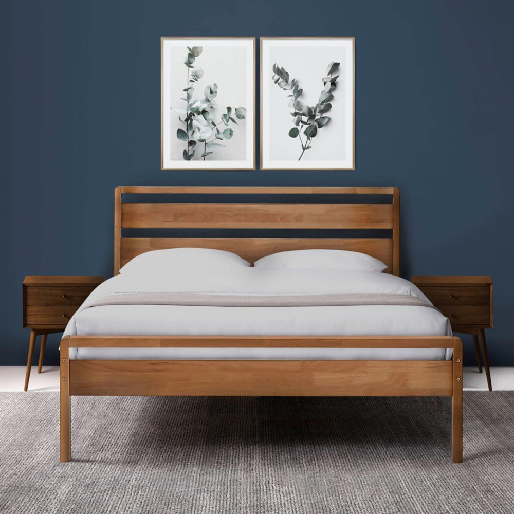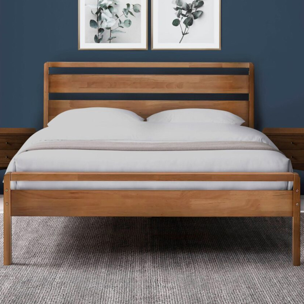 Add a charming touch to your bedroom with the Skandi Double Mid Oak Bed Frame. This classy bed provides both class and practicality with clean curved corners and a panelled headboard design. It features a solid slatted base for better support and comfort while resting. This robust bed frame with oak coloured finish also features sturdy legs for stability and support. This exquisite bed is suitable for all types of traditional and modern interior spaces.