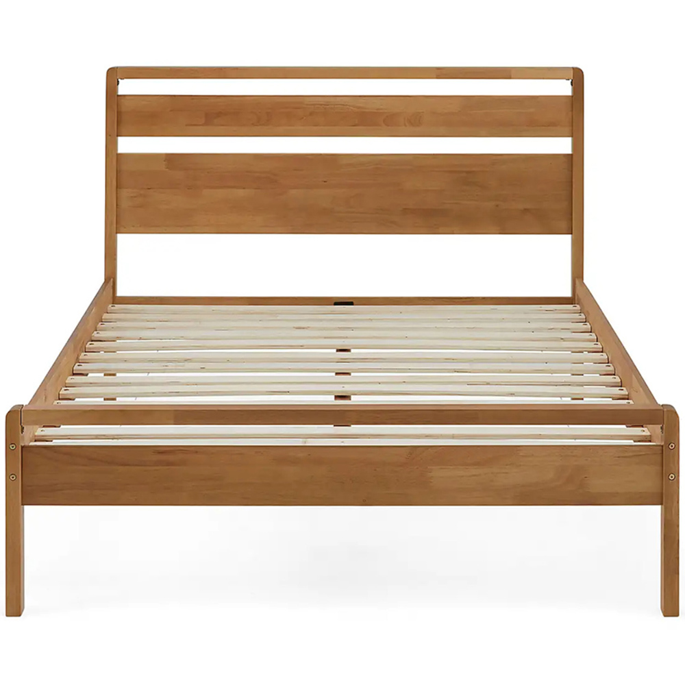 Add a charming touch to your bedroom with the Skandi King Mid Oak Bed Frame. This classy bed provides both class and practicality with clean curved corners and a panelled headboard design. It features a solid slatted base for better support and comfort while resting. This robust bed frame with oak coloured finish also features sturdy legs for stability and support. This exquisite bed is suitable for all types of traditional and modern interior spaces.